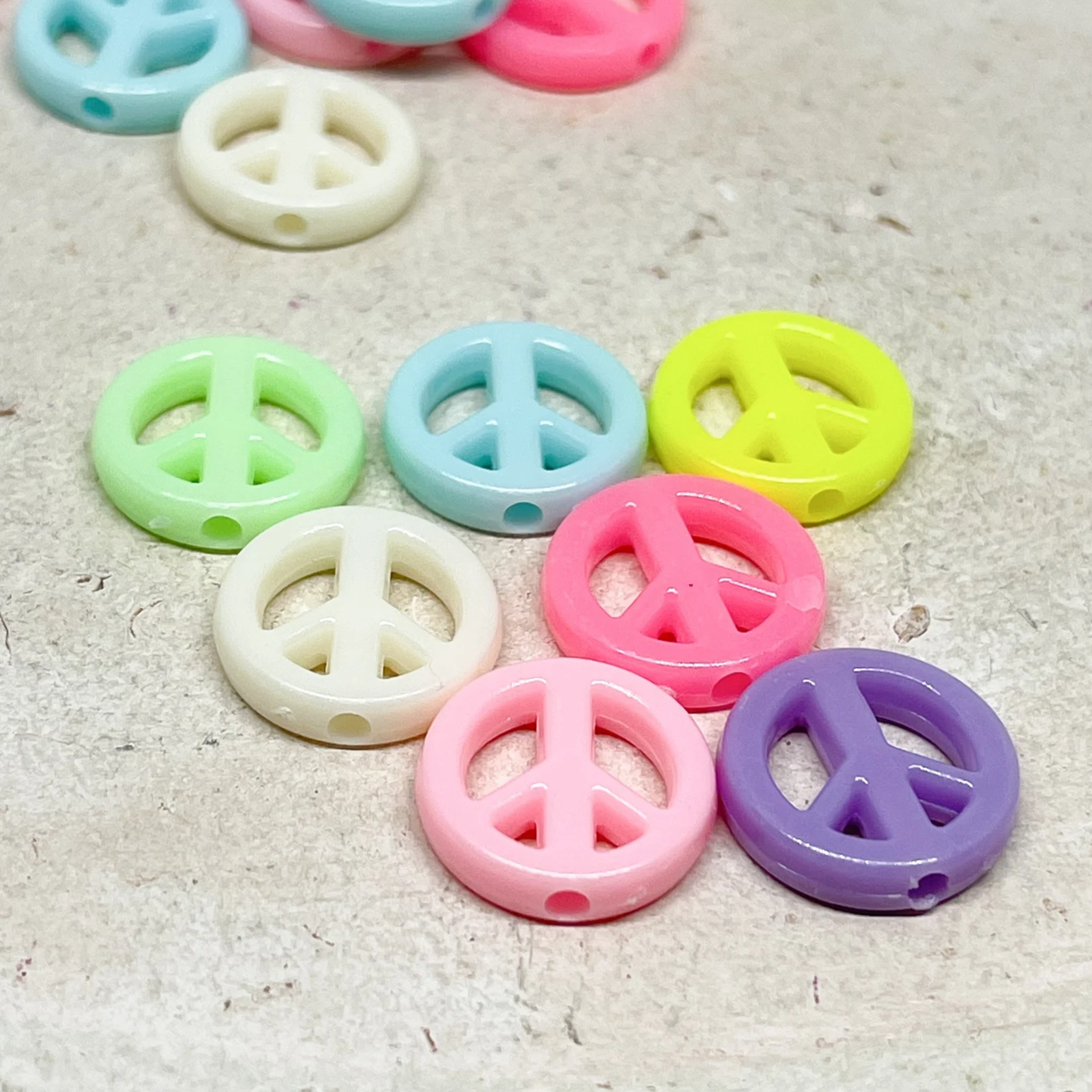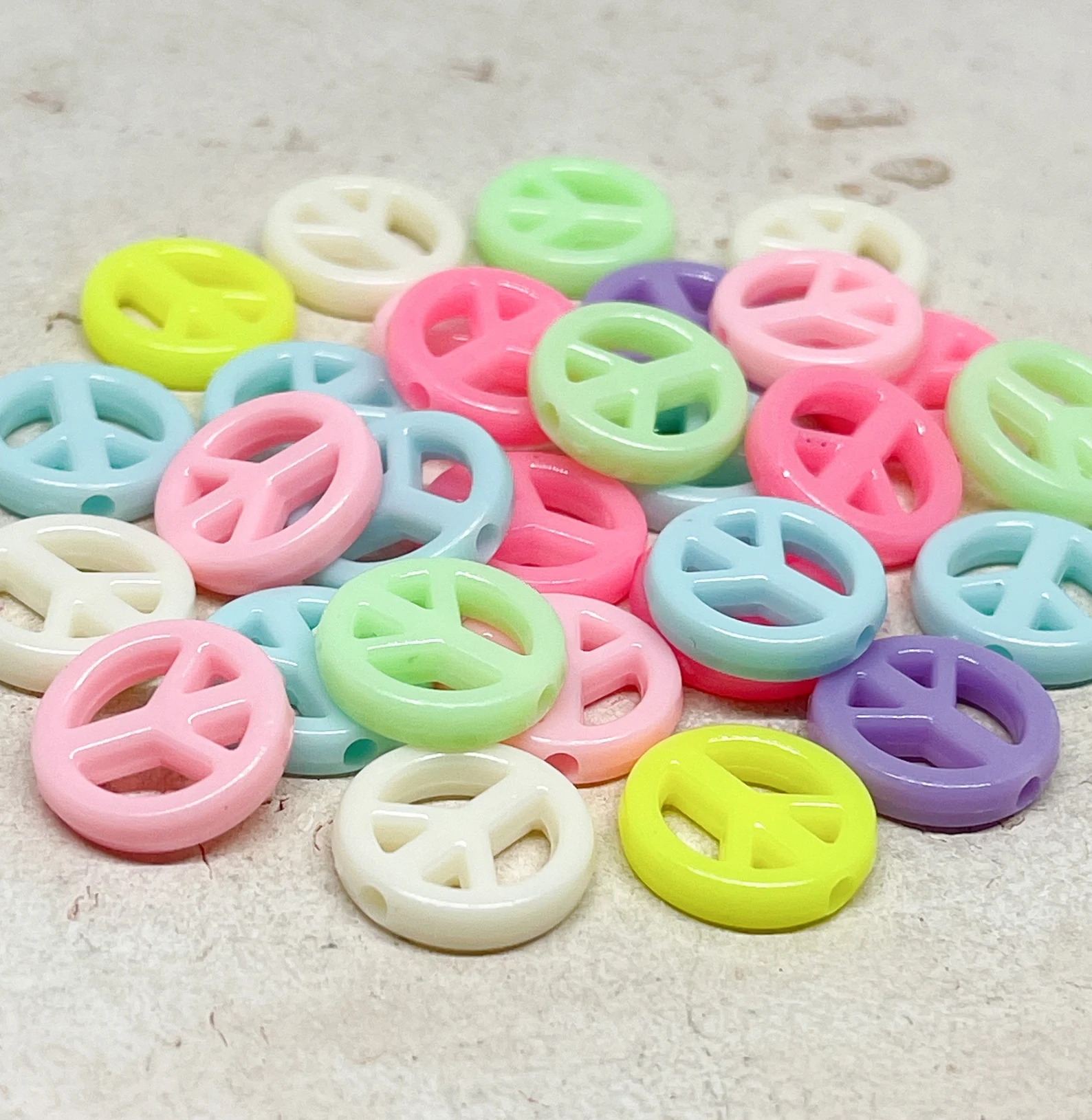25 St. Acryl Peace Perlen Bunt gemischt, Motiv Perlen Friedenszeichen, Pastel Peace Perlen