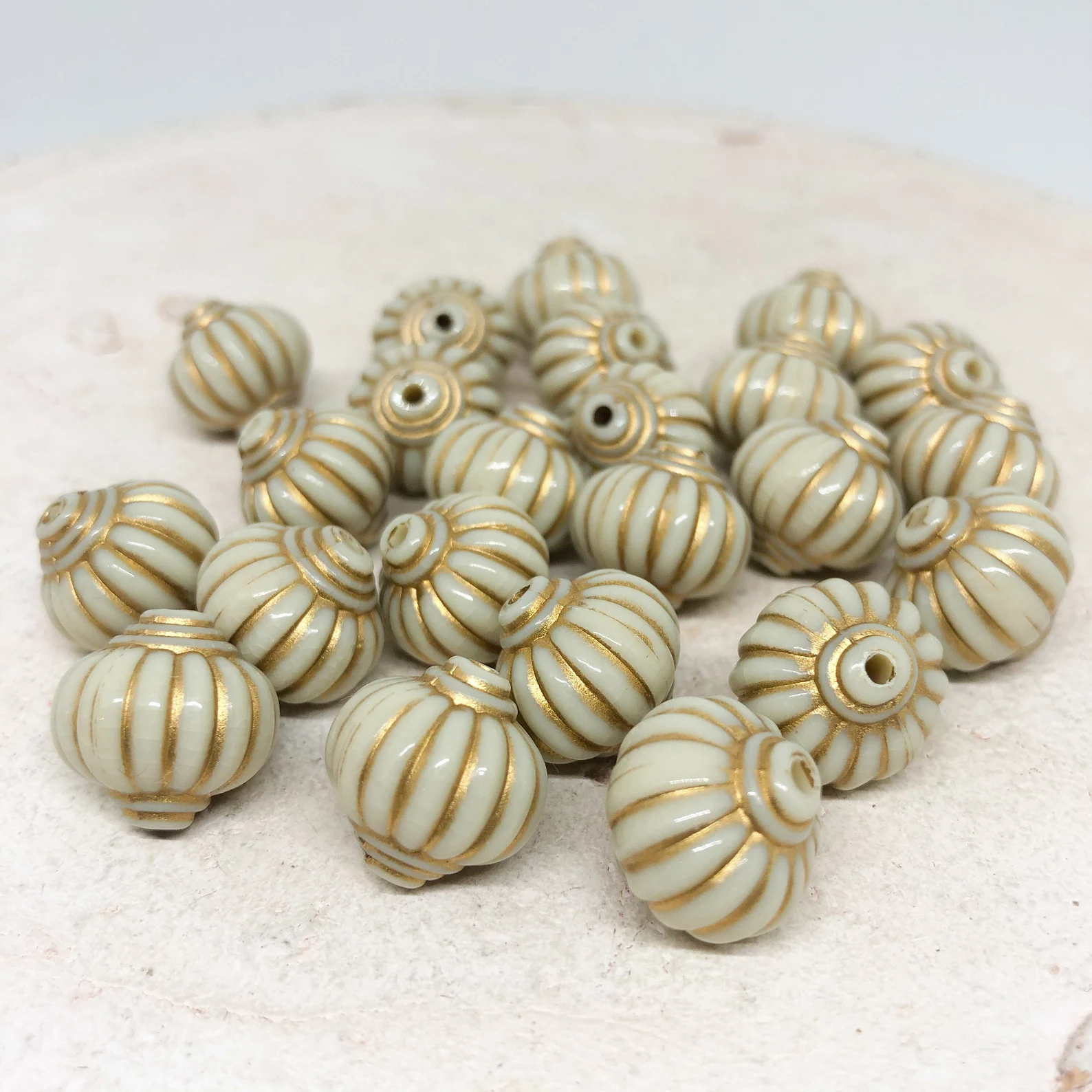 25 St. Acryl Perlen Laterne, Acrylperlen 14mm x 14mm Creme - Gold