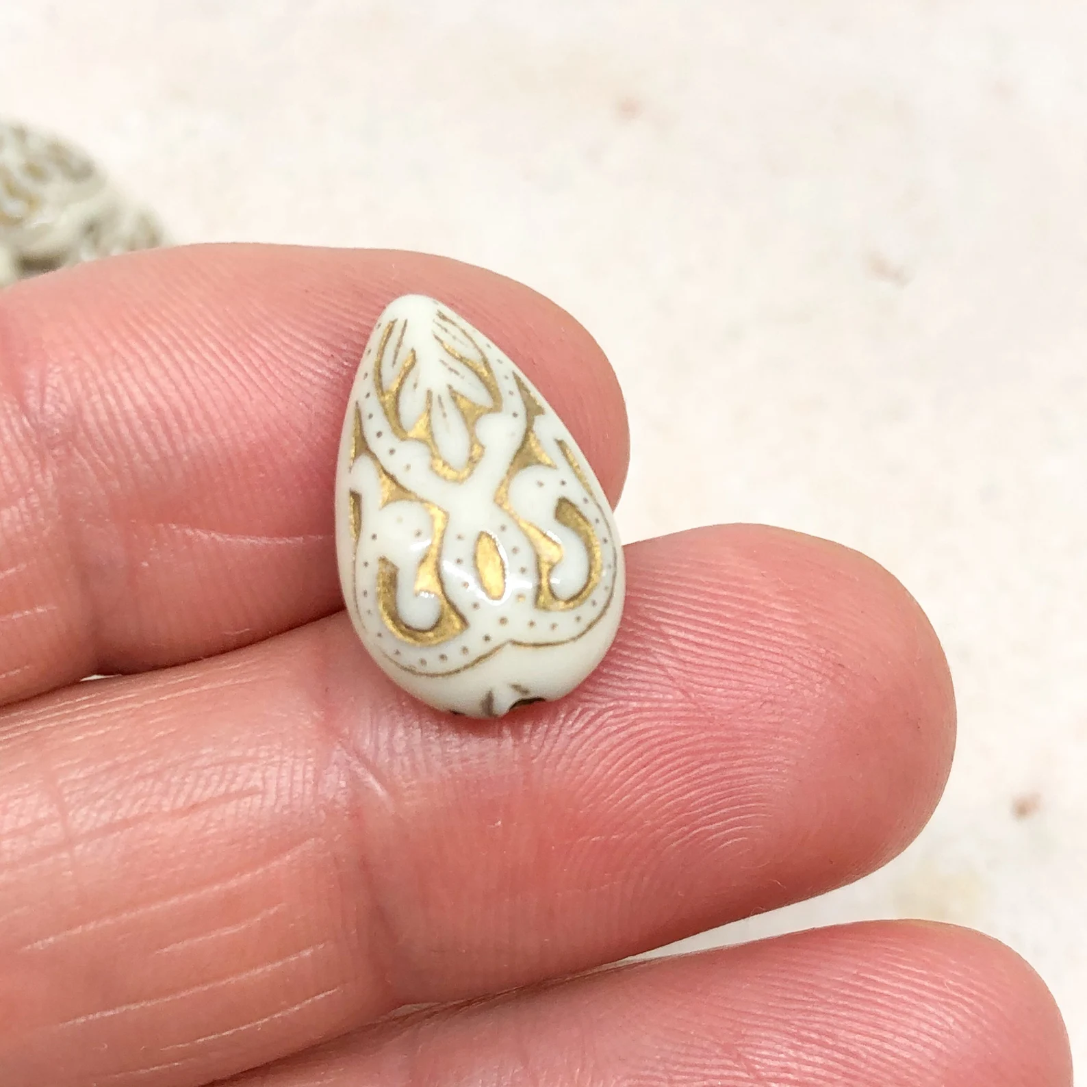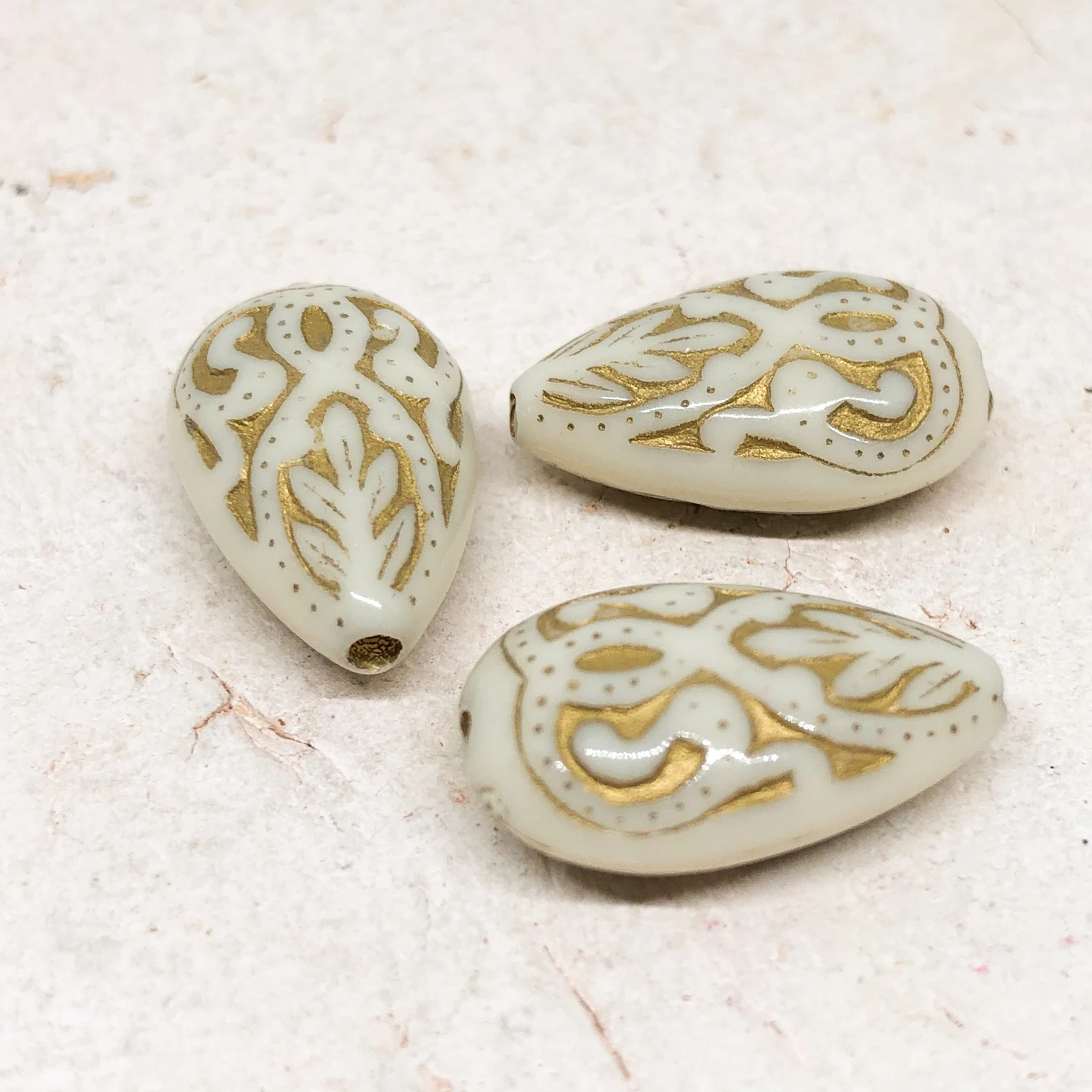 25 St. Acryl Perlen Tropfen Acrylperlen 18mm x 11.5mm x 7.5mm Creme Gold