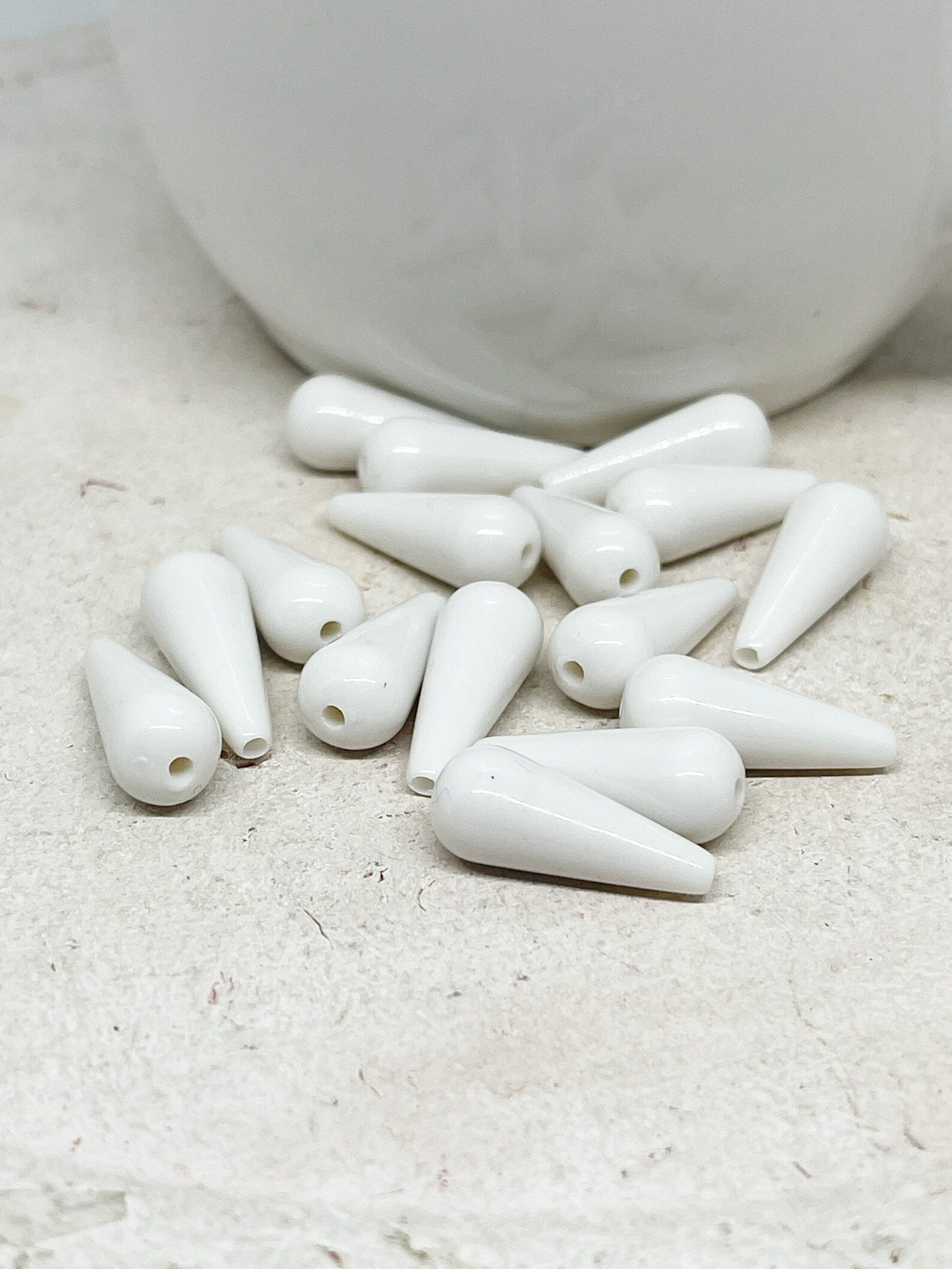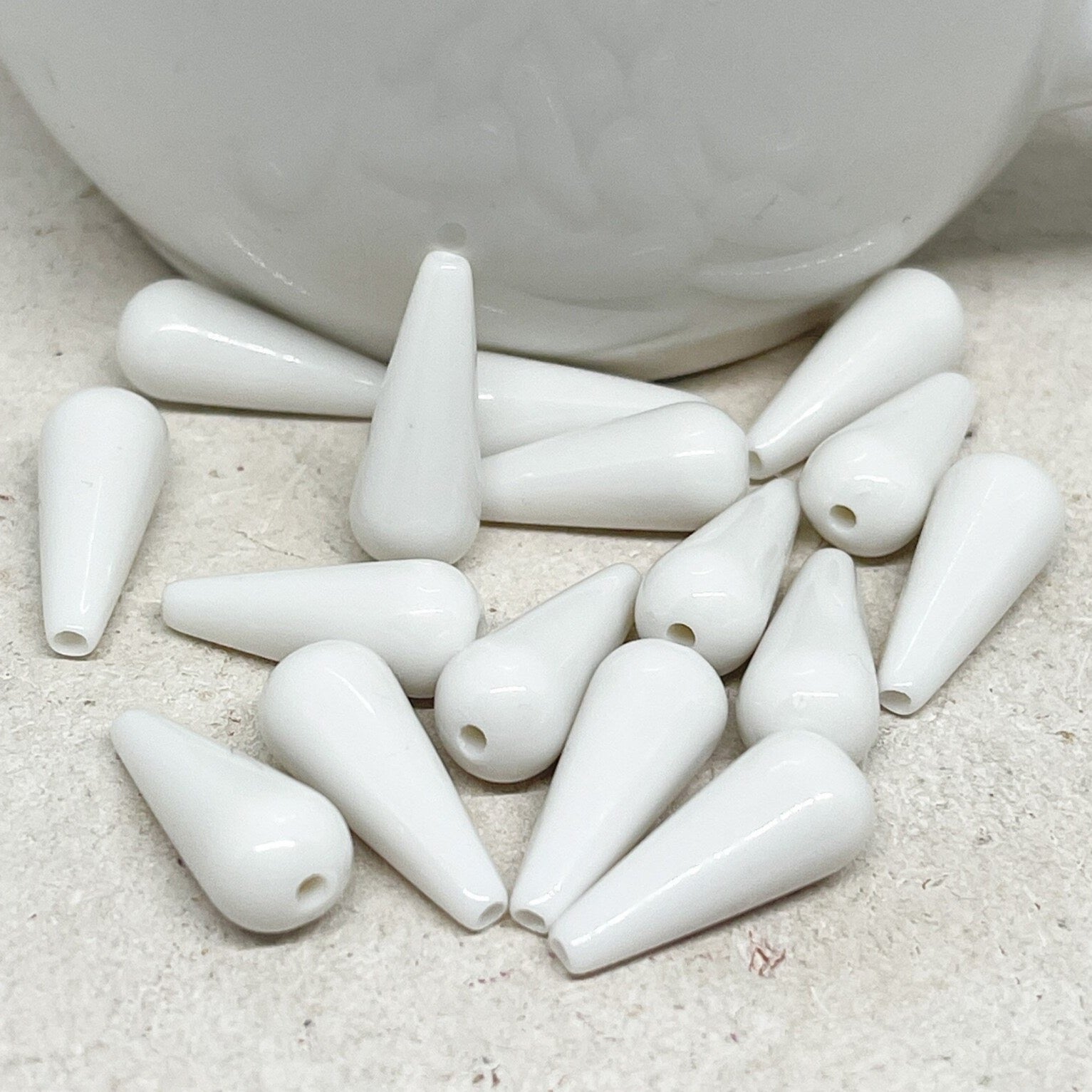 25 St. Acryl Perlen Tropfen Weiße 19mm x 7mm