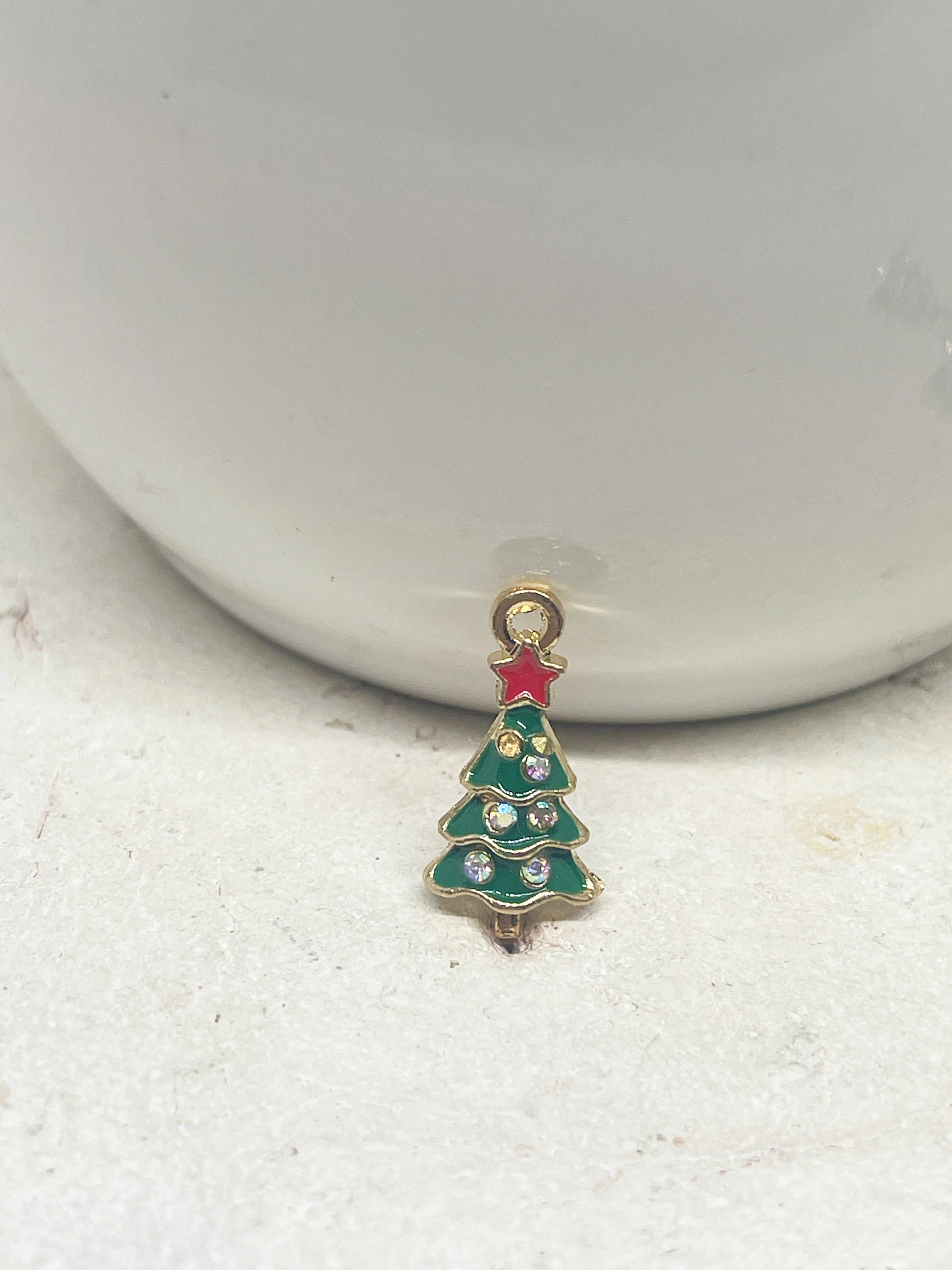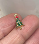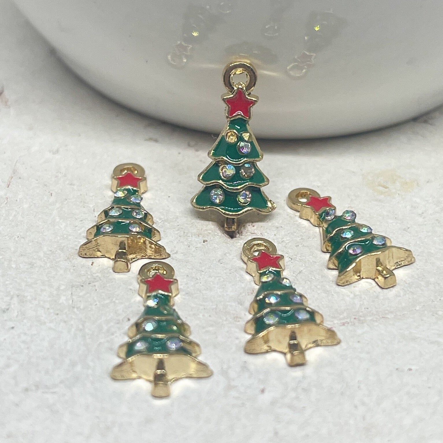 5 St. Weihnachtsanhänge Tannenbaum mit Strass Steinchen Emaille