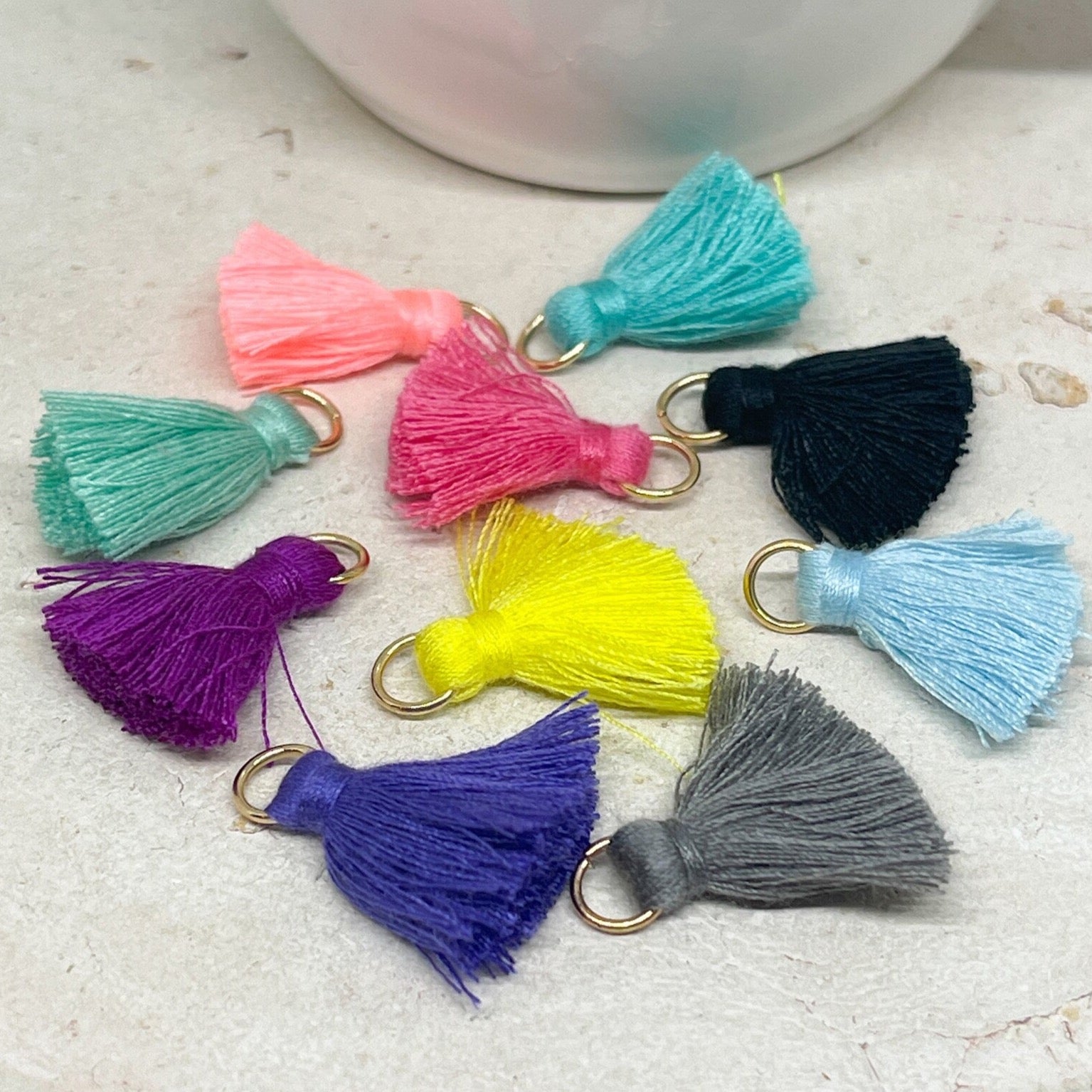 10 St. kleine Quasten, verschiedene Farben, mit Öse