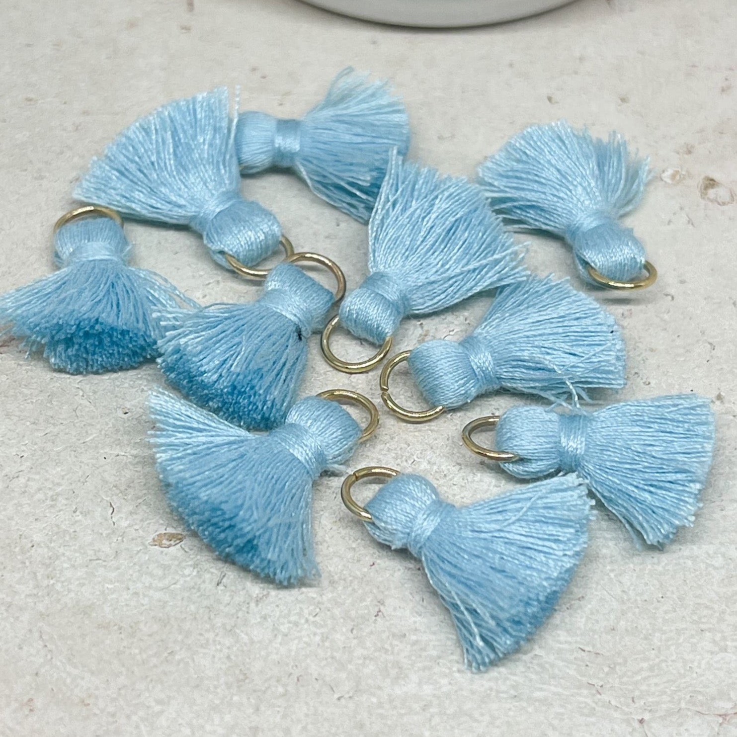 10 St. kleine Quasten, verschiedene Farben, mit Öse