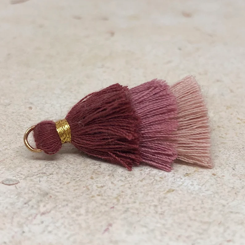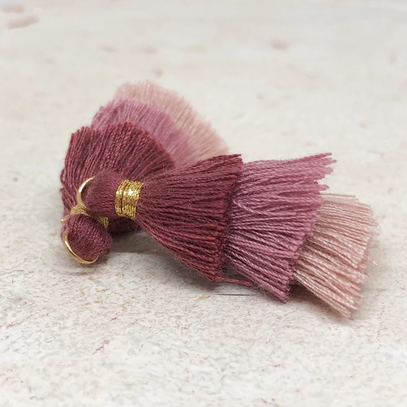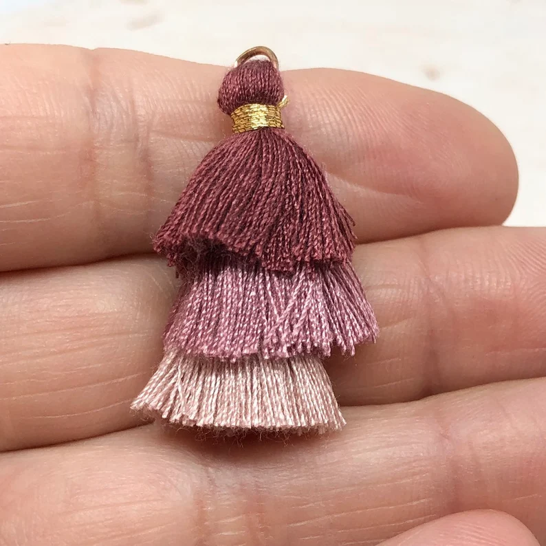 2 St. Quaste, 3 Lagig, 33 mm x 20 mm Tassel Lila/Rosa/Altrosa