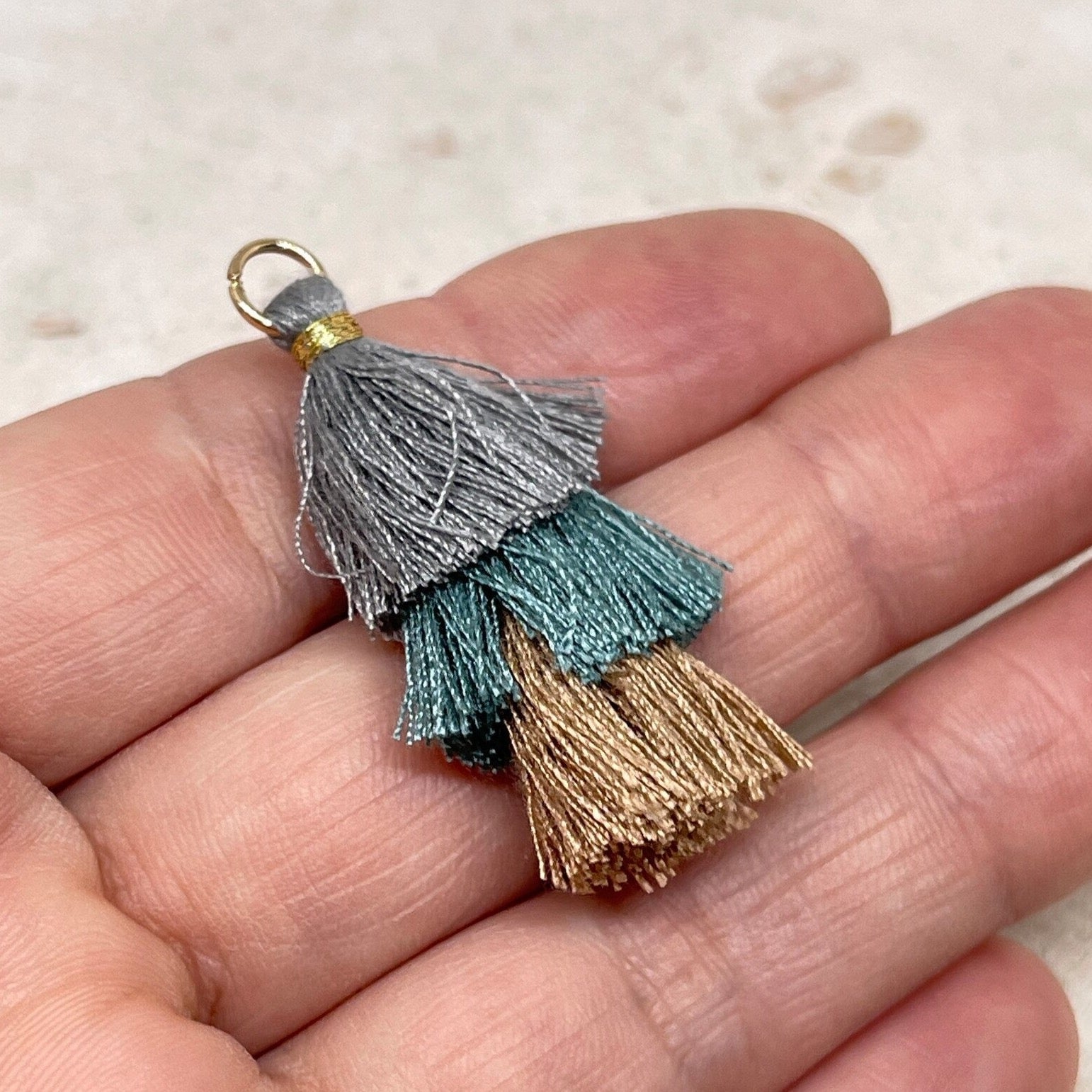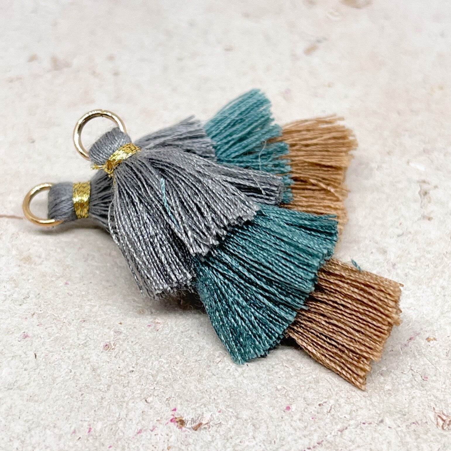 2 St. Quaste 3 Lagig 40x20mm - Blau/Grau/Beige