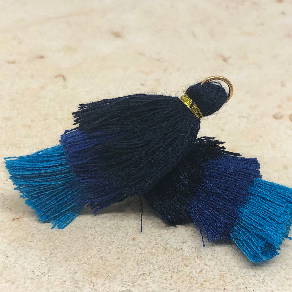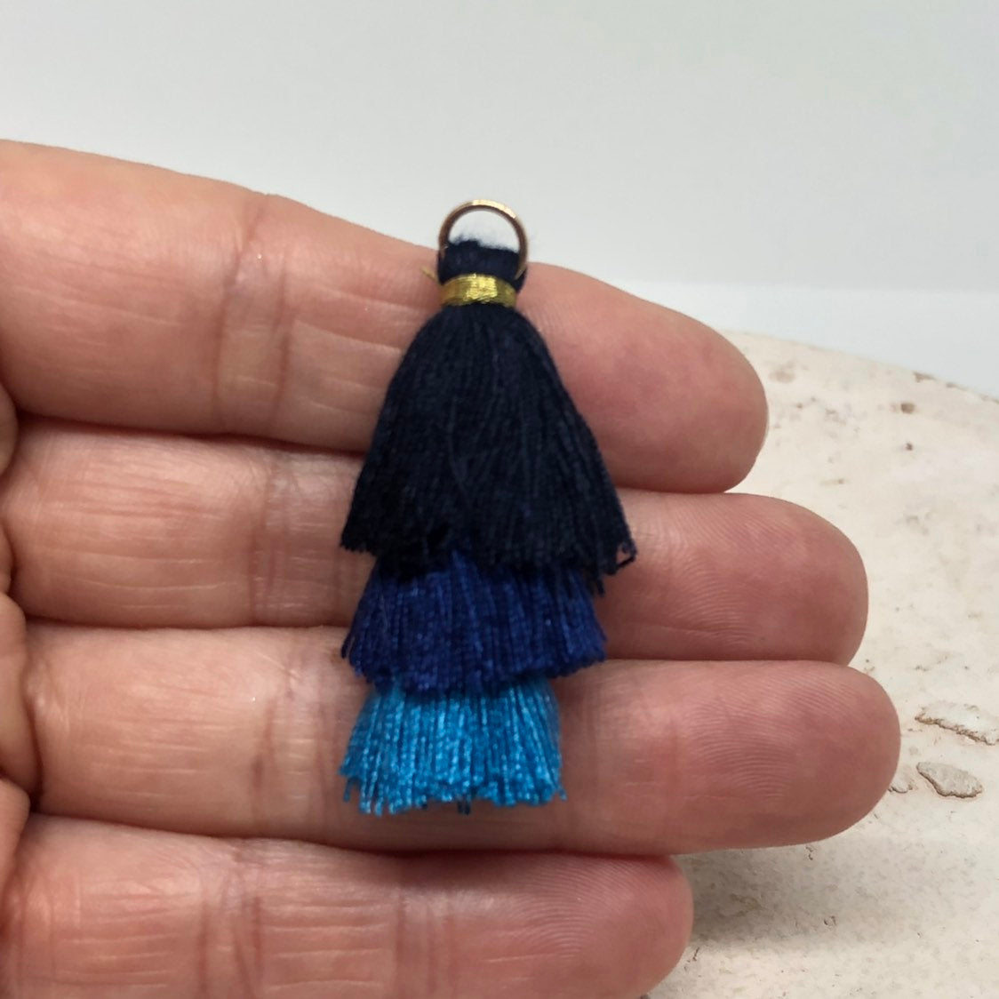 2 St. Quasten, 3 Lagig, 42~50mm mit Öse, Troddel, Tassel 3 Lagig, Quaste Blau