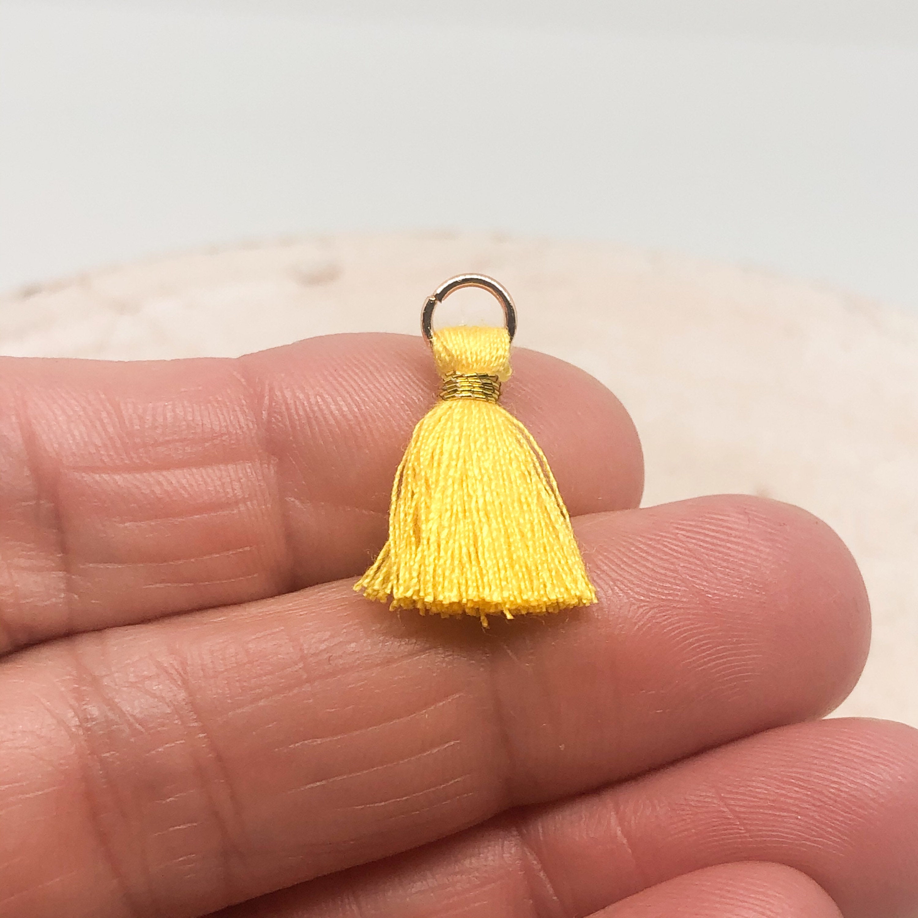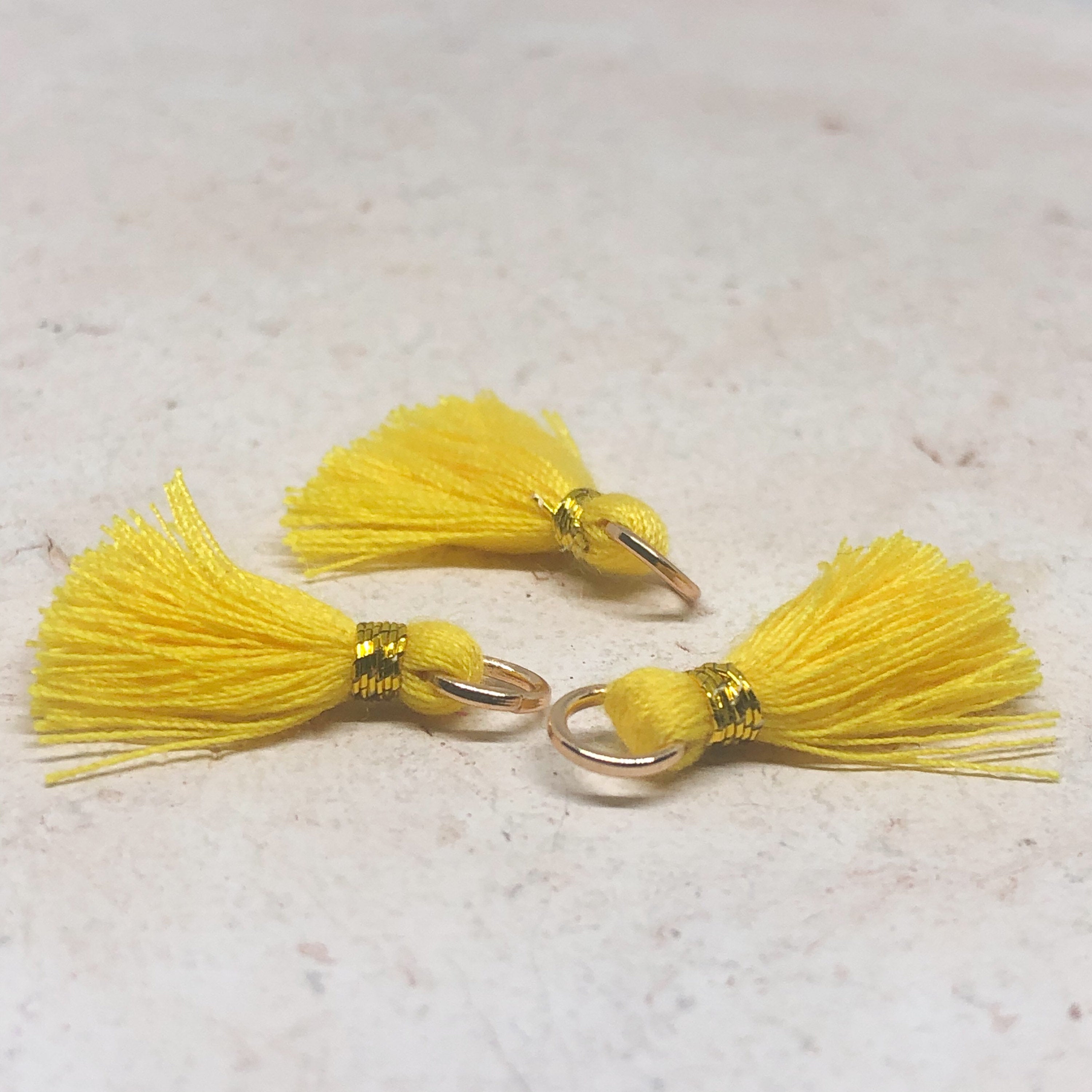 3 St. Quaste Gelb Gold, Tassel, Troddel 2 cm, DIY Schmuck machen, Quasten für Ohrringe , Gelbe Quasten