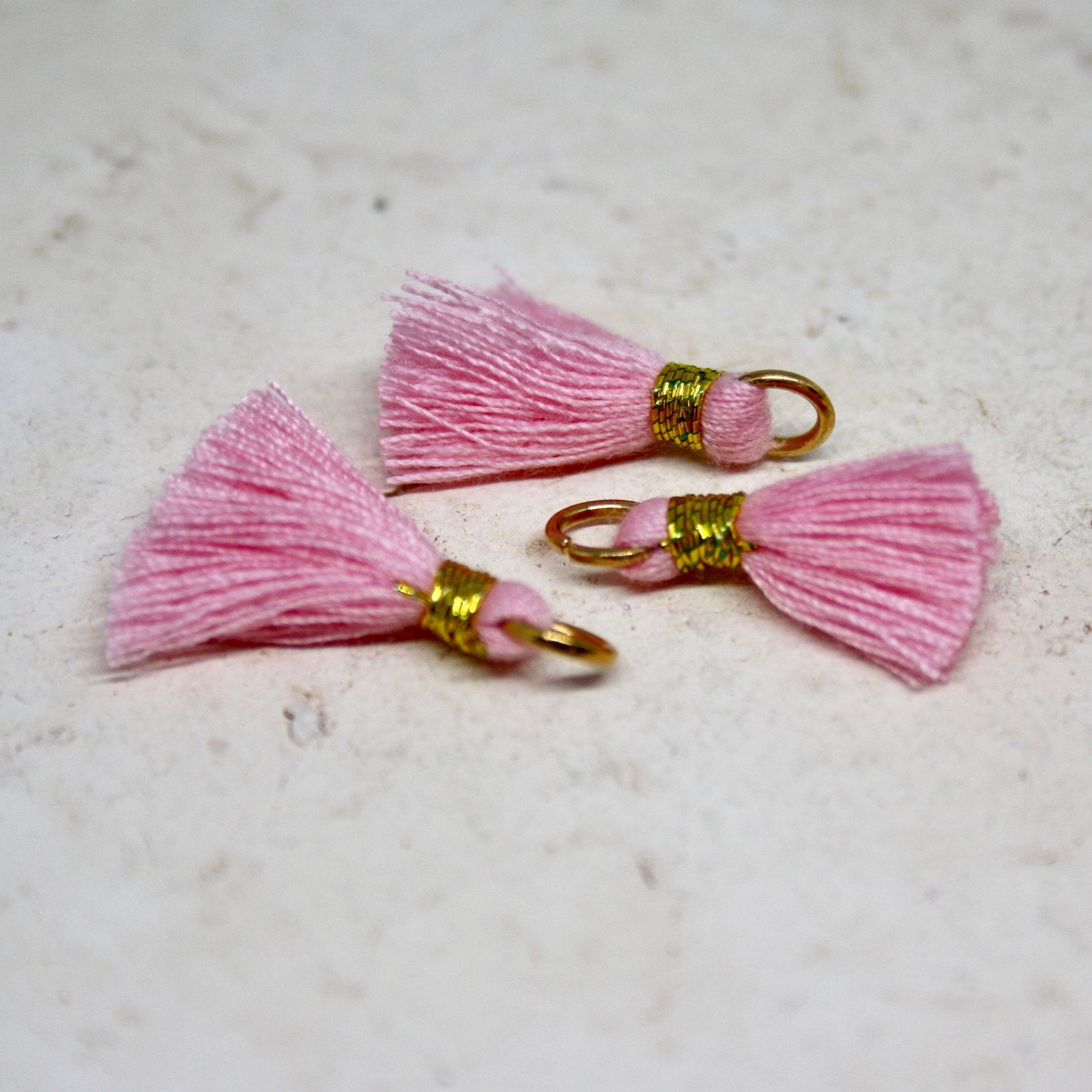 3 St. kleine Quasten, Rosa - Gold, mit Öse