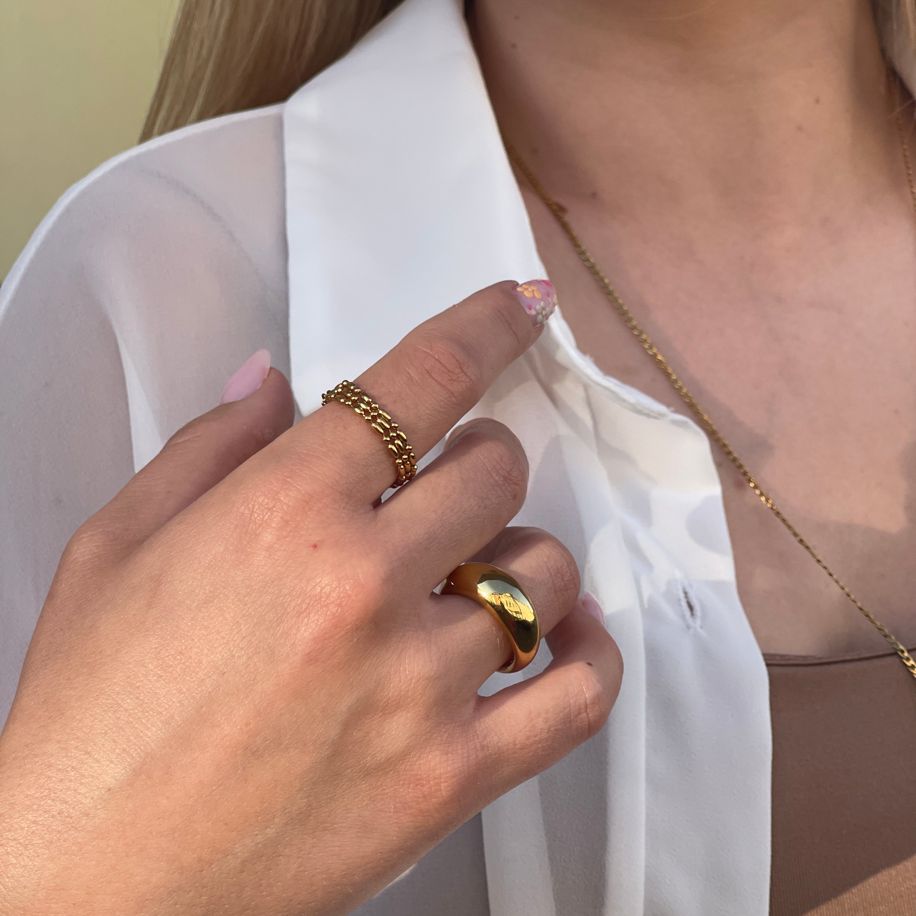 Verstellbarer Fingerring aus 304 Edelstahl, Vakuumbeschichtet, 18K vergoldet, wasserfest, grösenverstellbar von 15,7mm - 20,6mm.