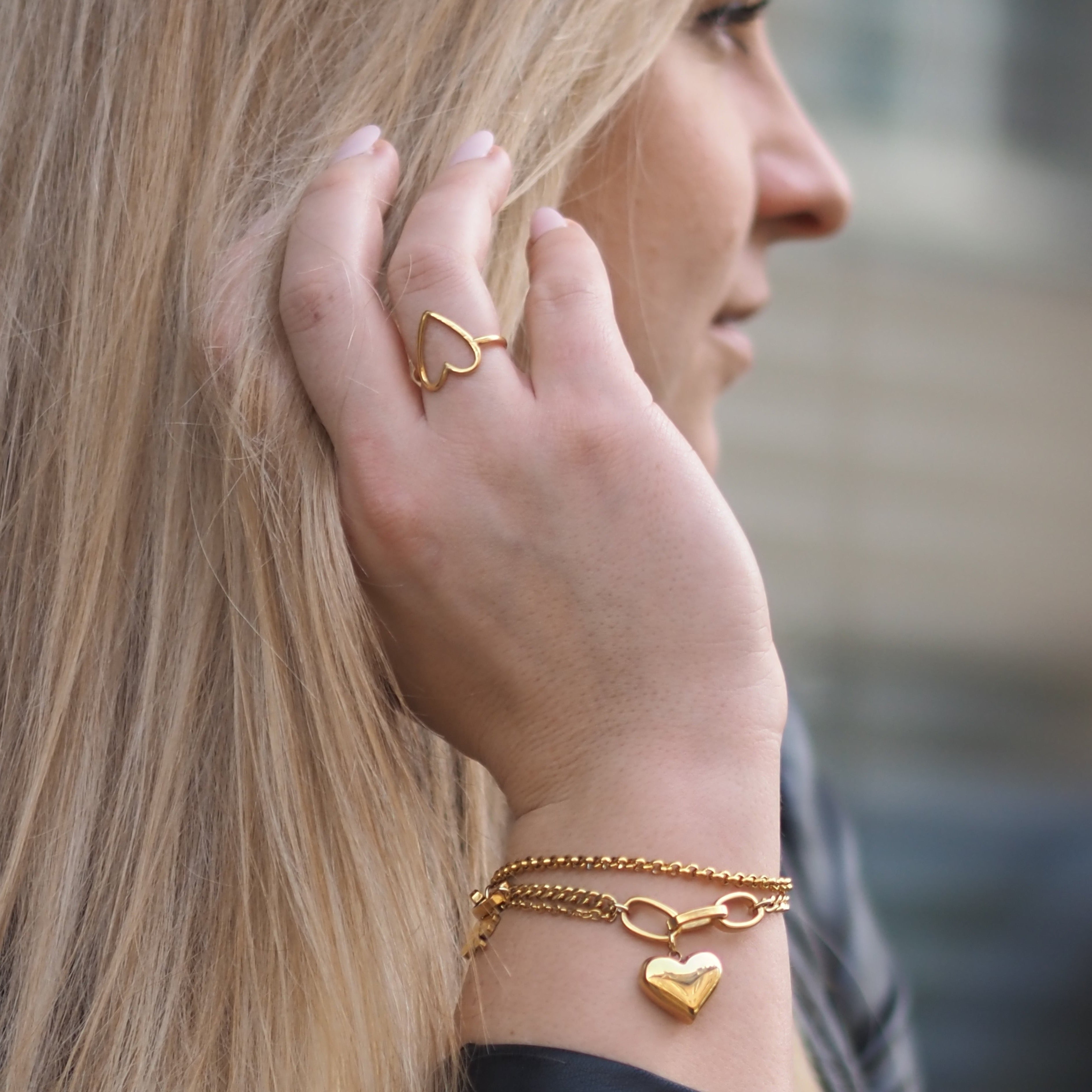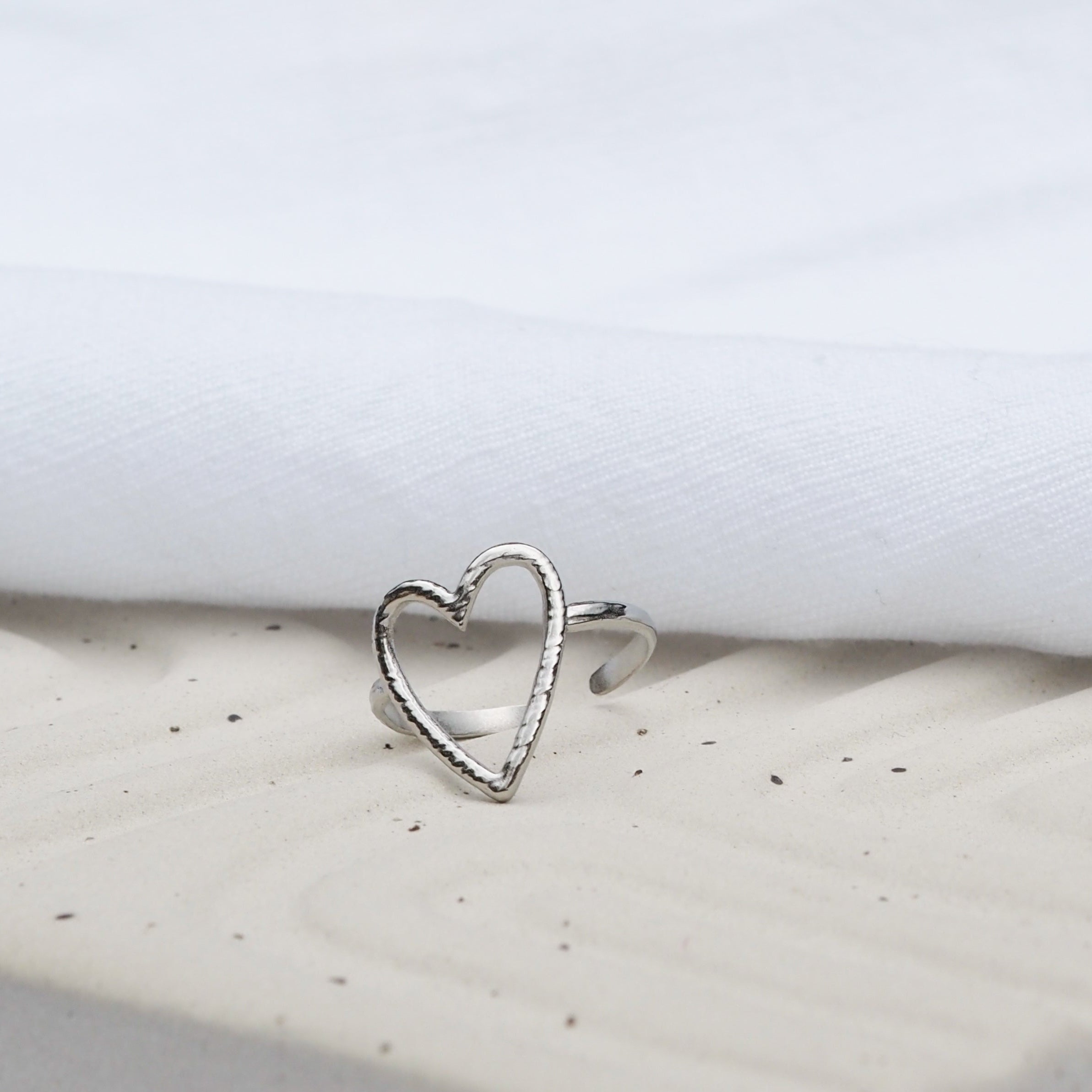 Fingerring in Herzform aus 304 Edelstahl,( IP) Ionenbeschichtet, Wasserfest. Dieser Ring ist Größenverstellbar.