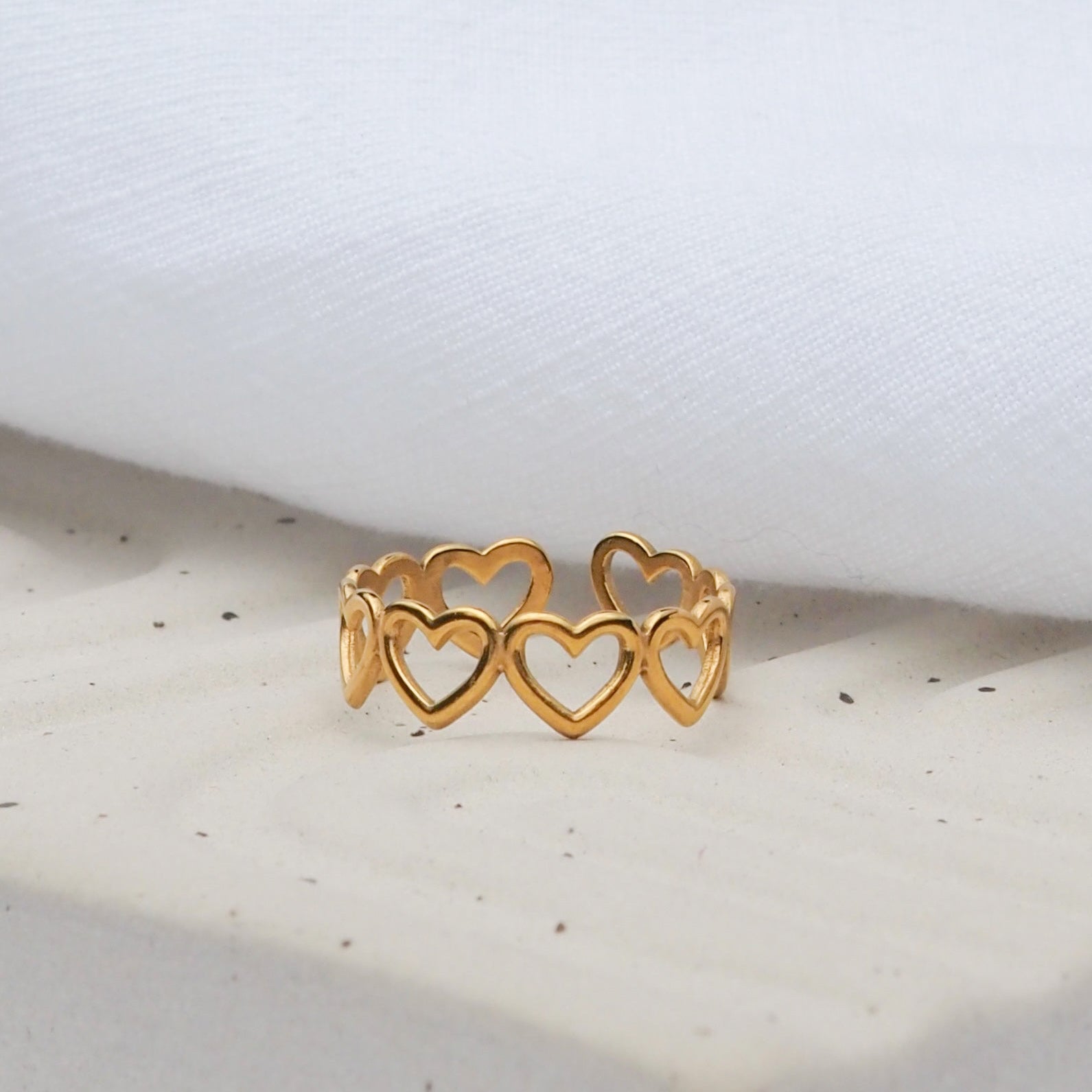 Fingerring aus 304 Edelstahl, IP Ionenbeschichtet, 18 K vergoldet, wasserfest, grösenverstellbar.
