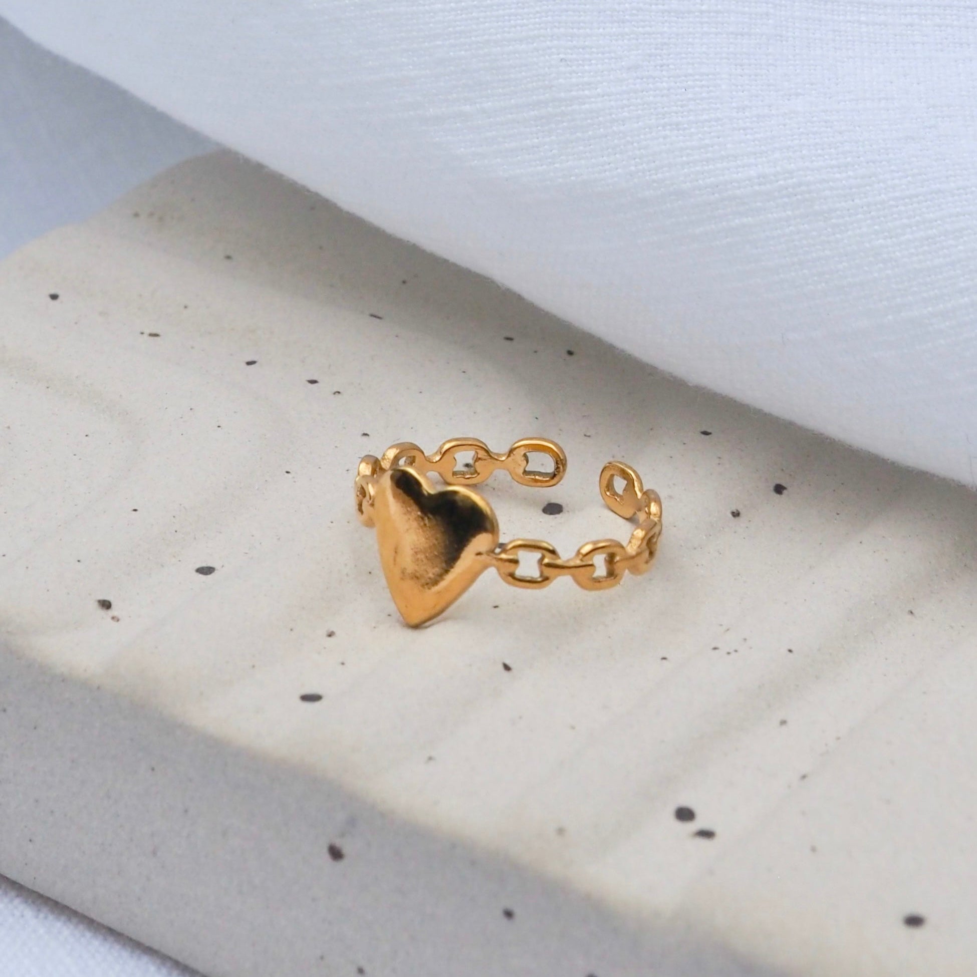 Offener Fingerring aus 304 Edelstahl, IP Ionenbeschichtet, 18 K vergoldet, wasserfest, grösenverstellbar.