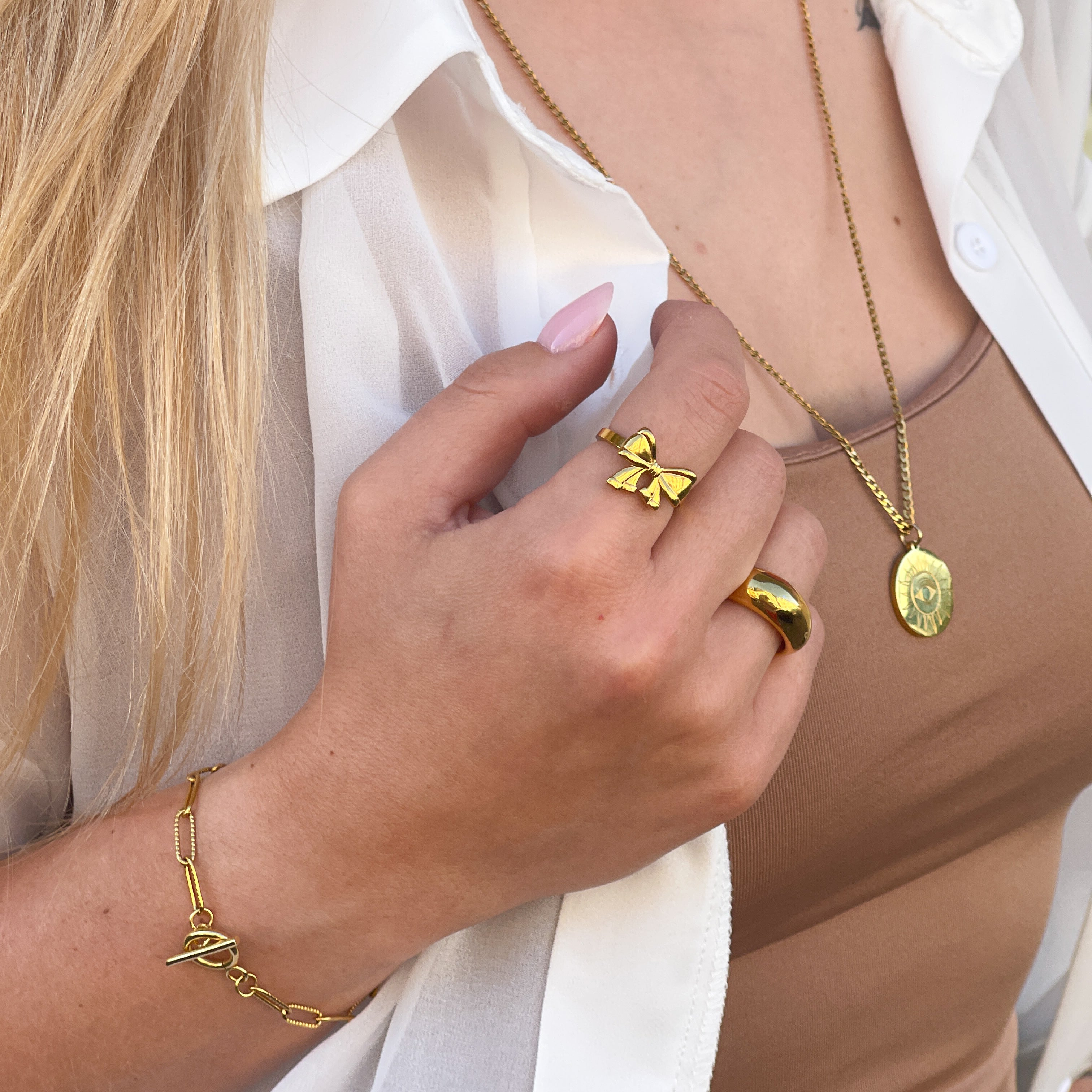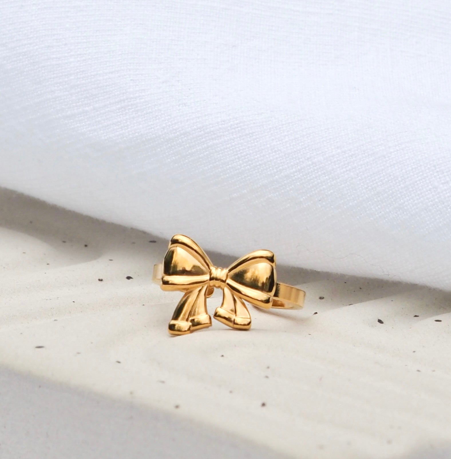 Fingerring mit Schleife aus 304 Edelstahl,( IP) Ionenbeschichtet, Wasserfest. Dieser Ring ist Größenverstellbar.