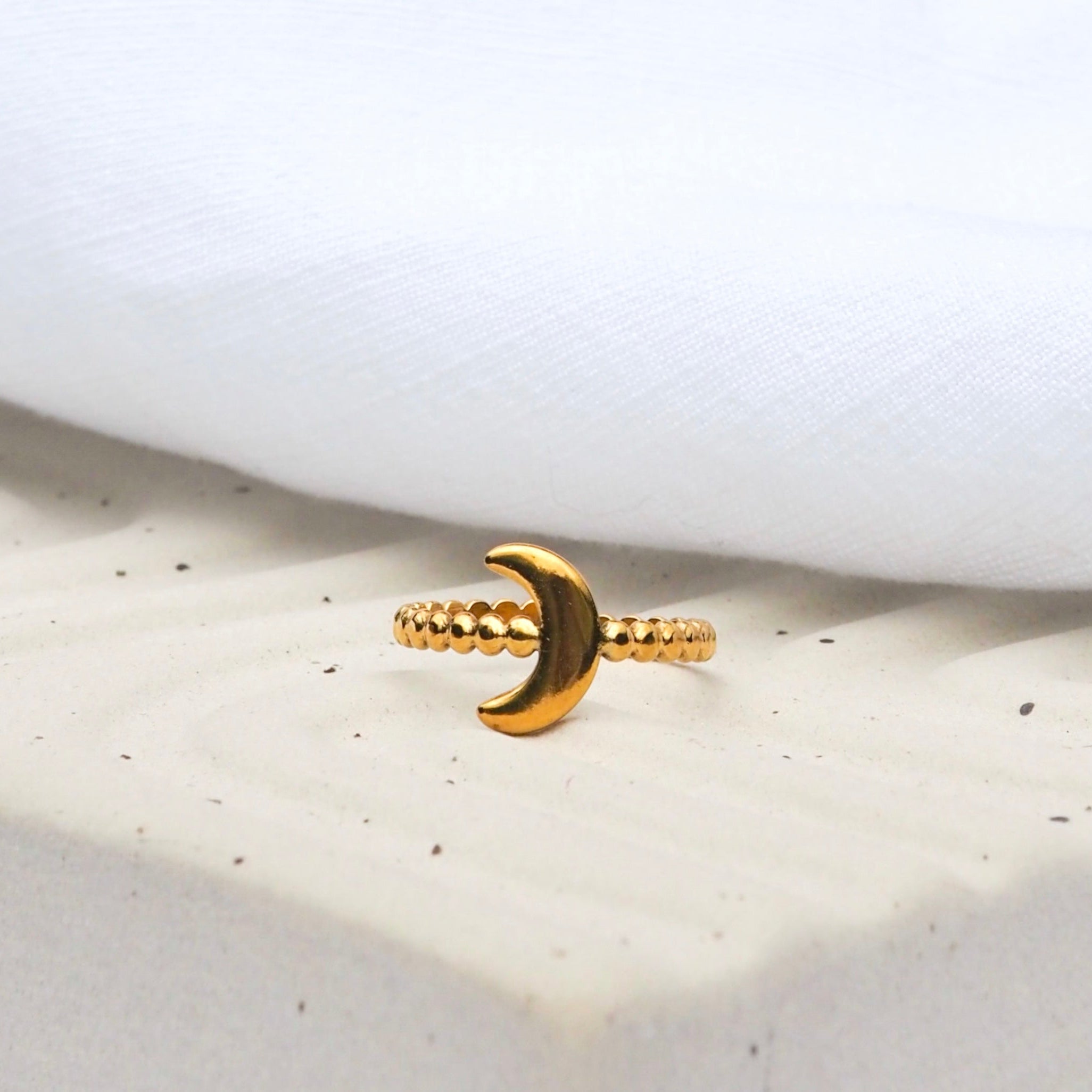 Offener Fingerring aus 304 Edelstahl, IP Ionenbeschichtet, 18 K vergoldet, wasserfest, grösenverstellbar.