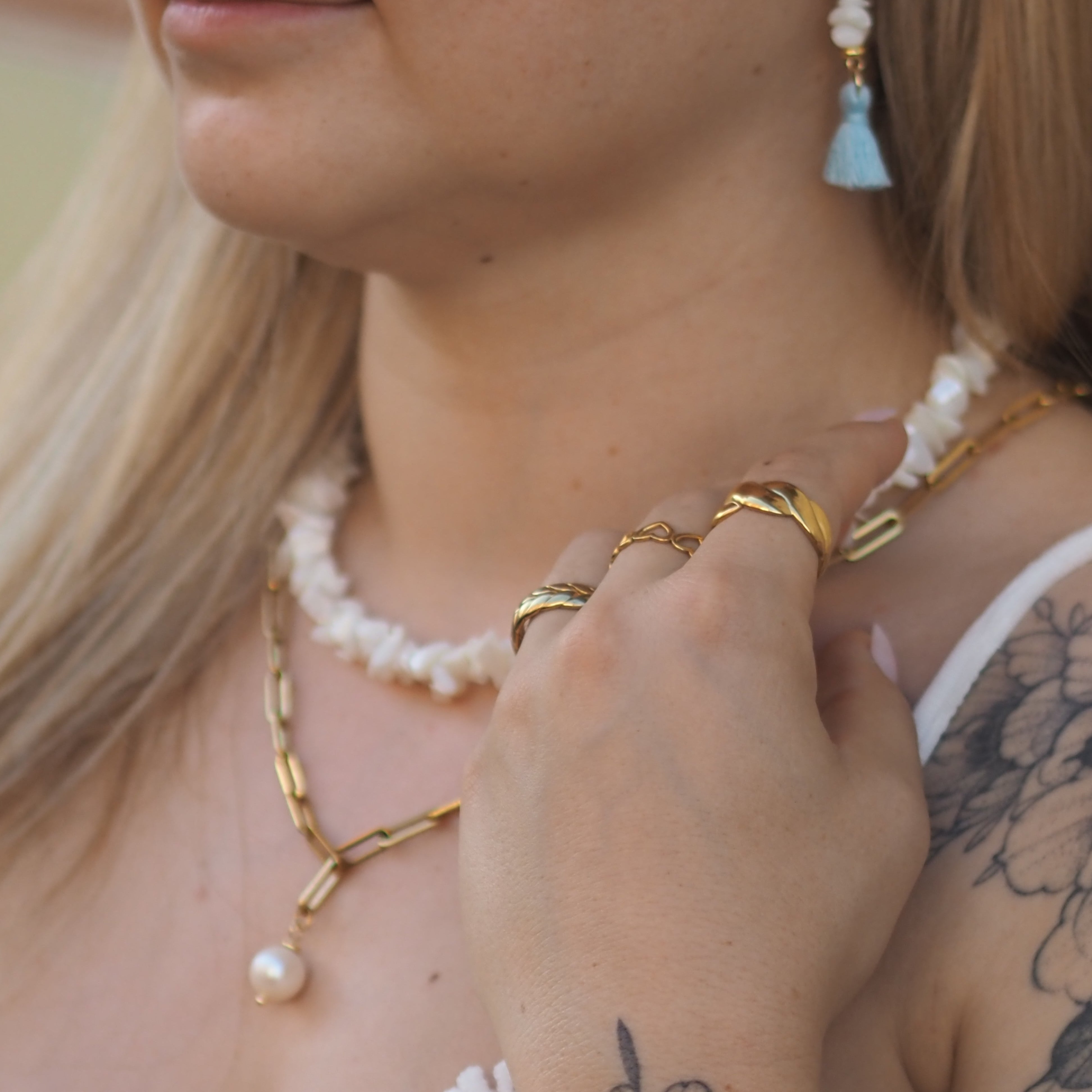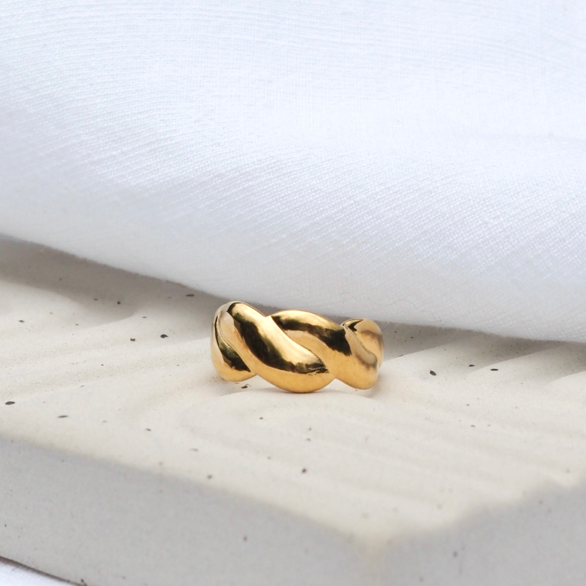 Offener Fingerring aus 304 Edelstahl, IP Ionenbeschichtet, 18 K vergoldet, wasserfest, grösenverstellbar.