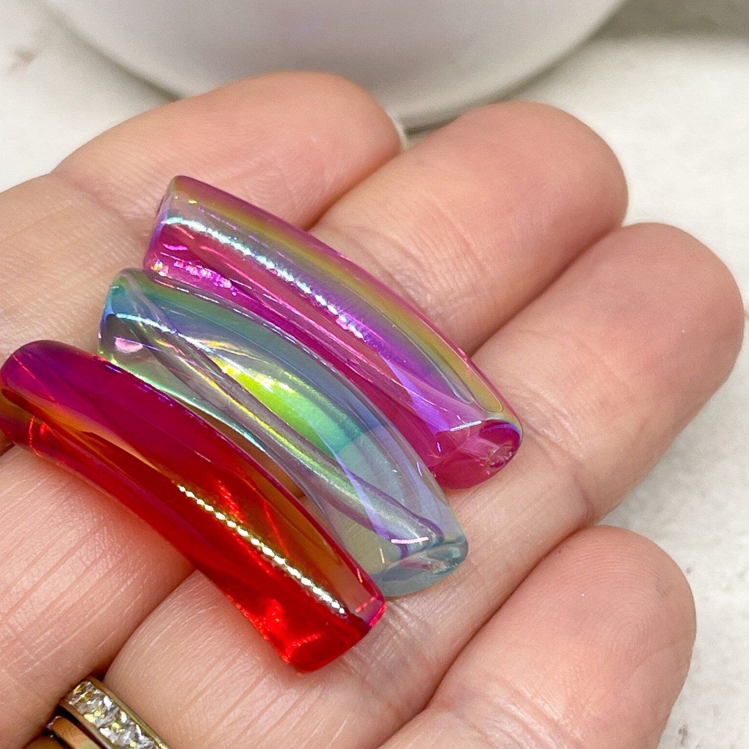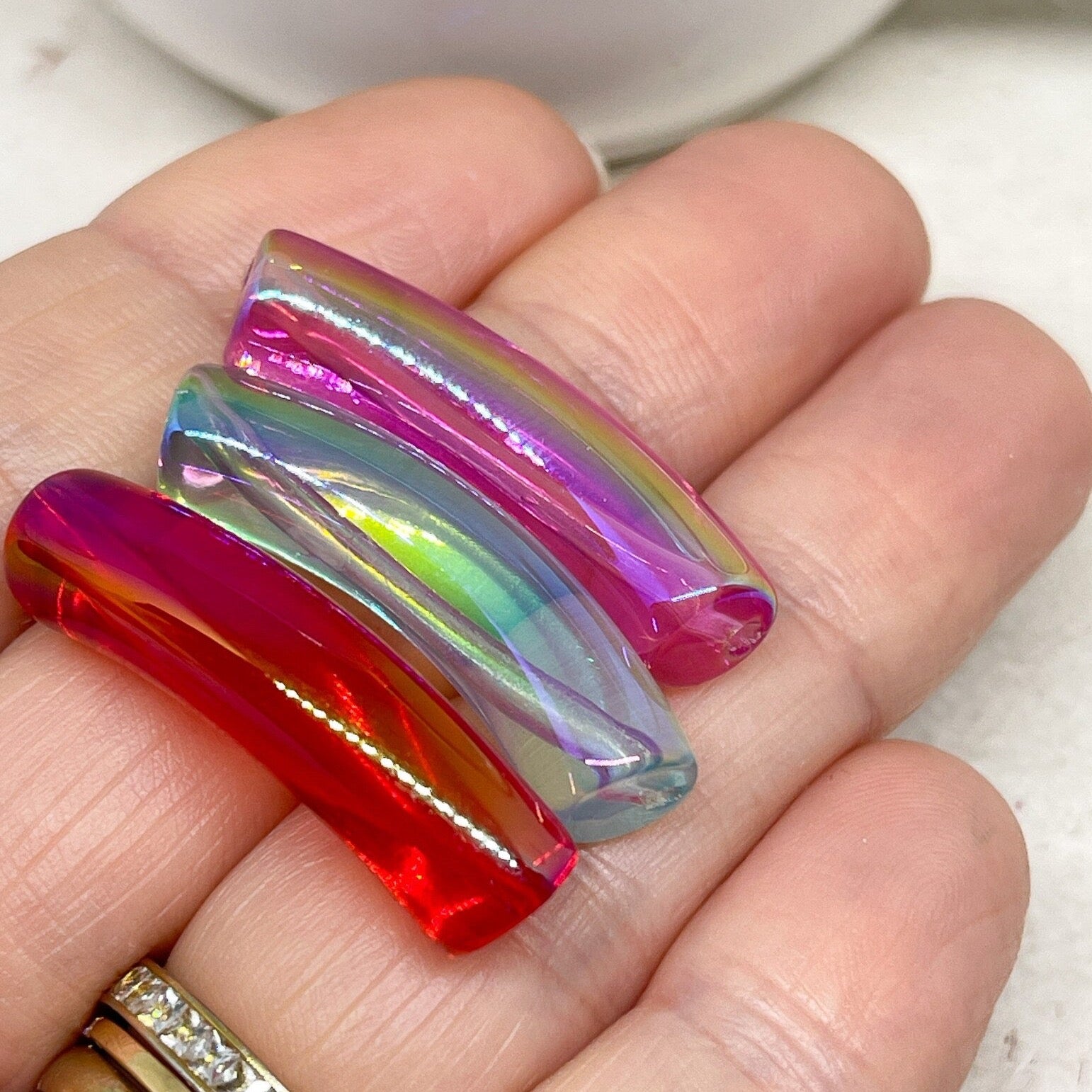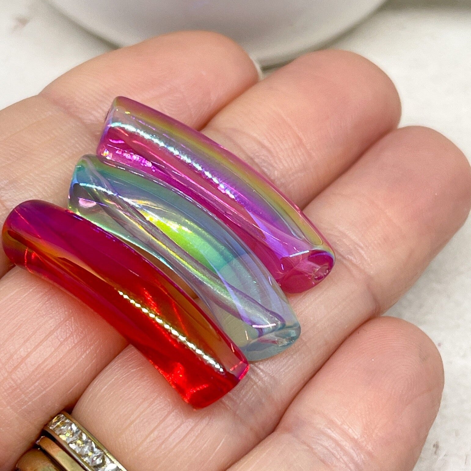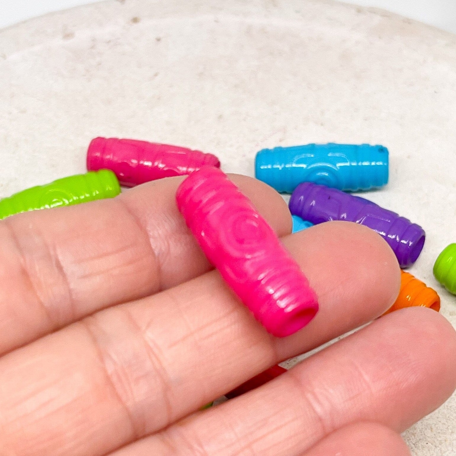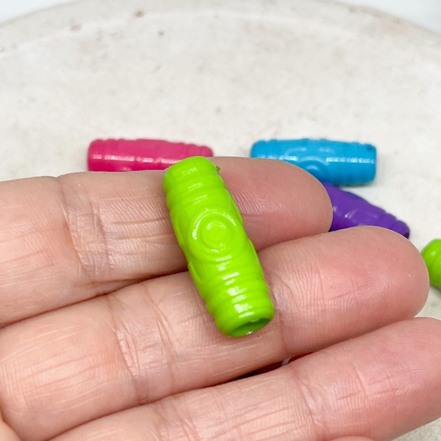Tubenperlen aus Acryl – auch Röhrchenperlen genannt – bringen moderne Formen und klare Linien in deine Schmuckprojekte. Durch ihre längliche, zylindrische Form eignen sie sich perfekt für Armbänder, Ketten, Ohrringe oder kreative DIY-Dekorationen.