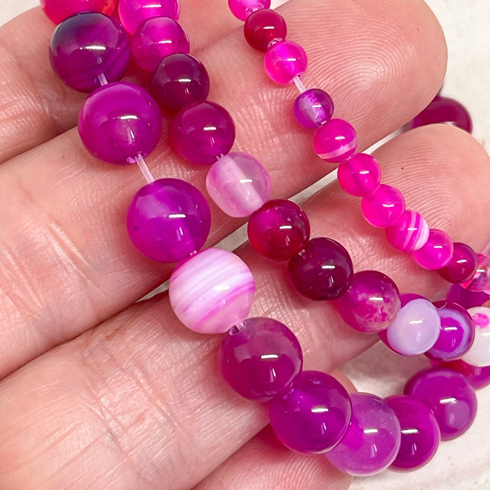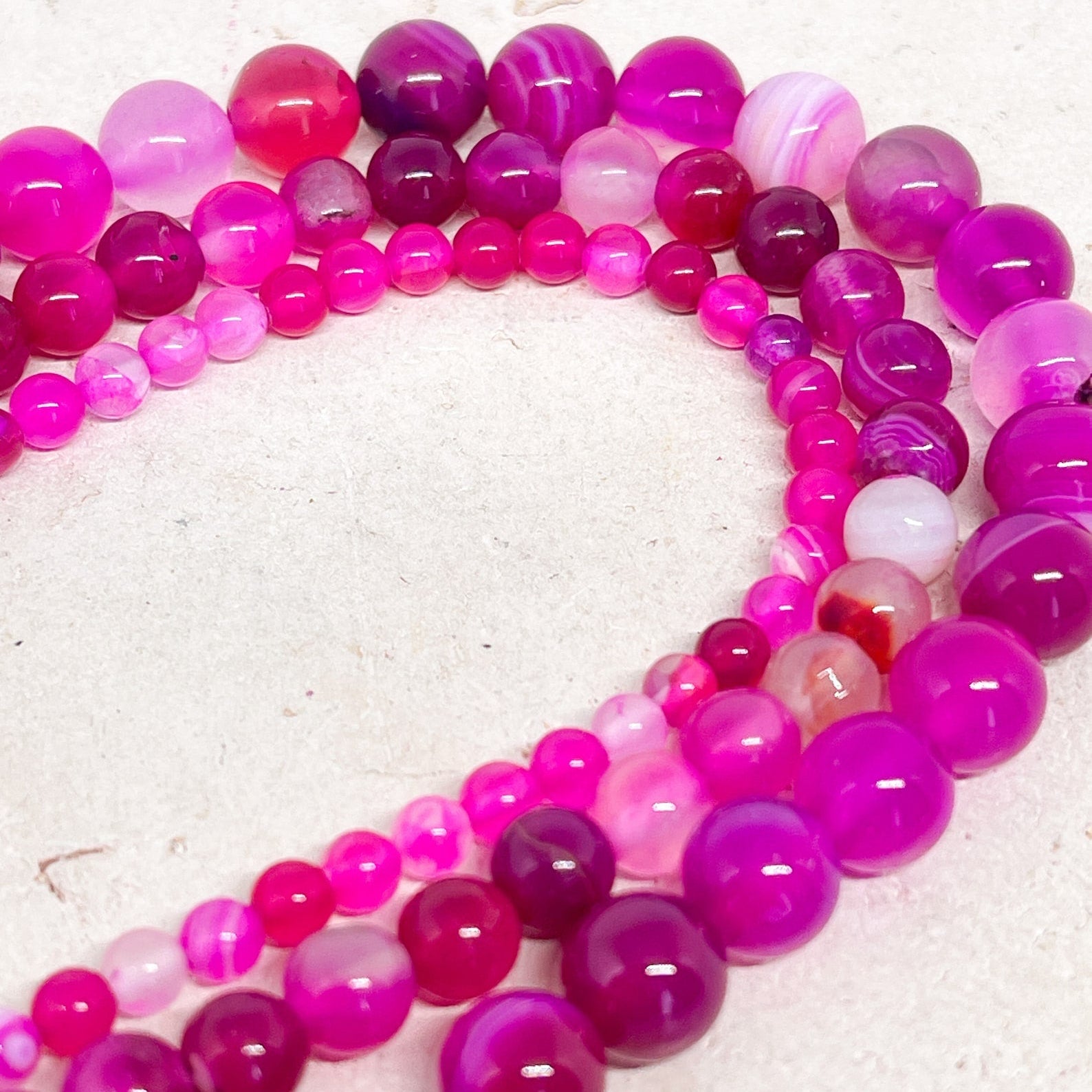 Die Halbedelsteine sind poliert und in verschiedenen Größen erhältlich, sodass sie sich ideal für Armbänder, Halsketten, Ohrringe oder Kombinationen mit anderen Perlen eignen.