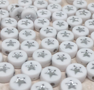 50 St. Weiße Acryl Perlen mit Stern 7mm - Weiß Silber