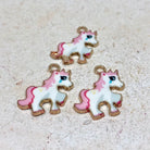 5 St. Einhorn Anhänger Emaille - Weiß/Rosa