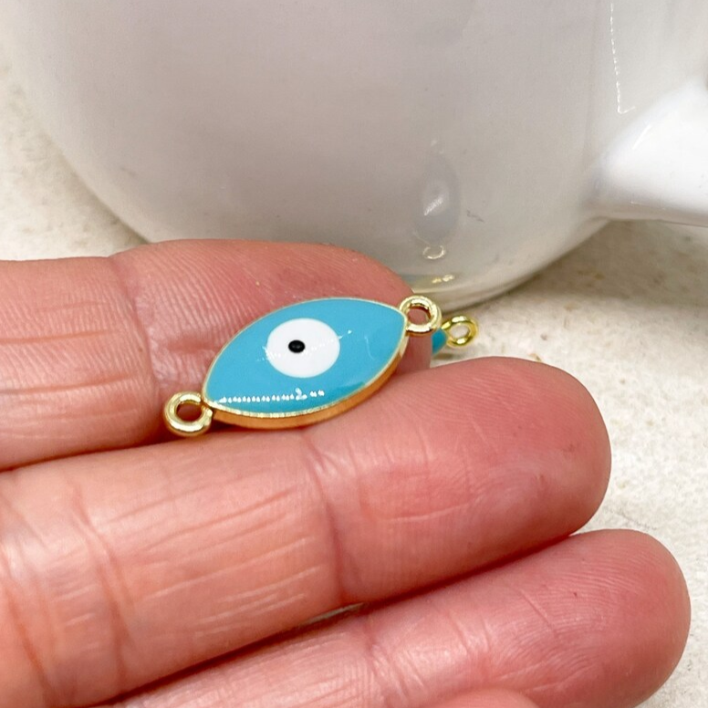3 St. Verbinder Emaille Böses Auge Glücksbringer Charm - Türkis