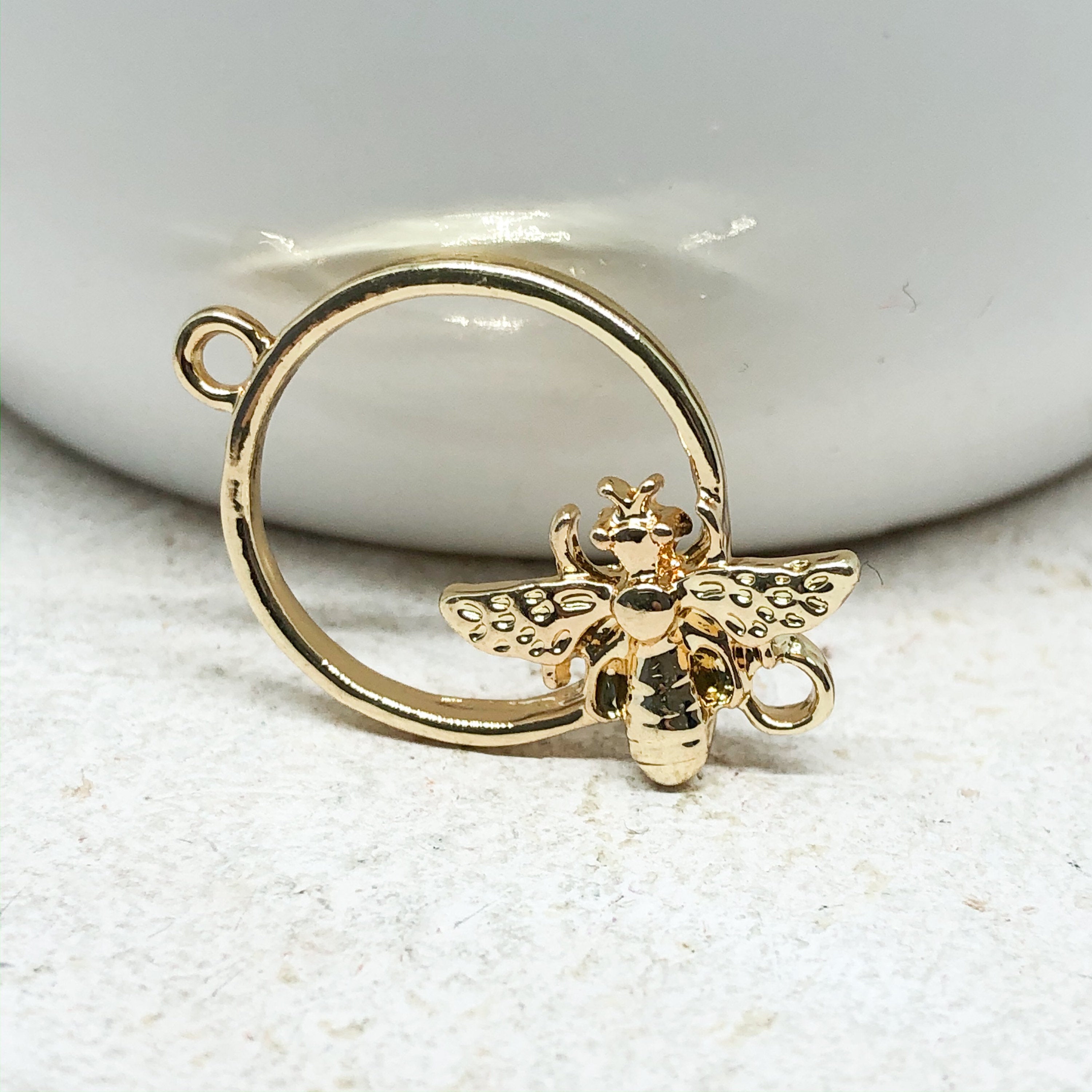 Süße Verbinder mit einer Biene aus Messing, vergoldet, einseitig gearbeitet.