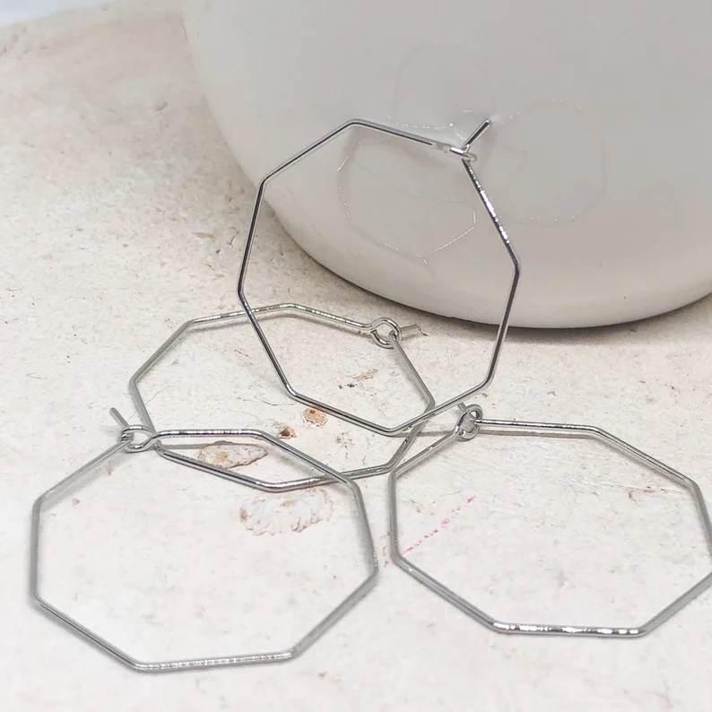 Creolen Hexagon Ohrringe 30mm 3 Paar silberfarben