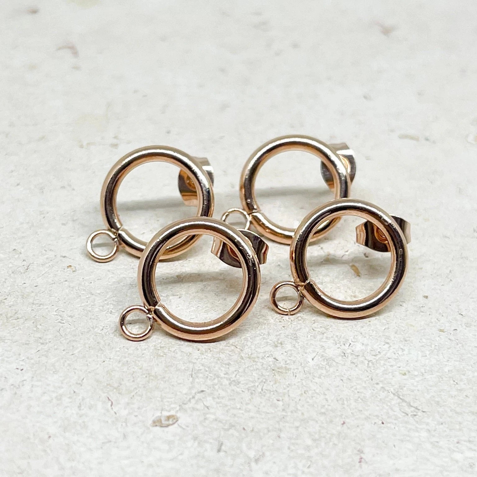 Ohrstecker mit Ring und Schlaufe Edelstahl 2 Paar - rosegoldfarben