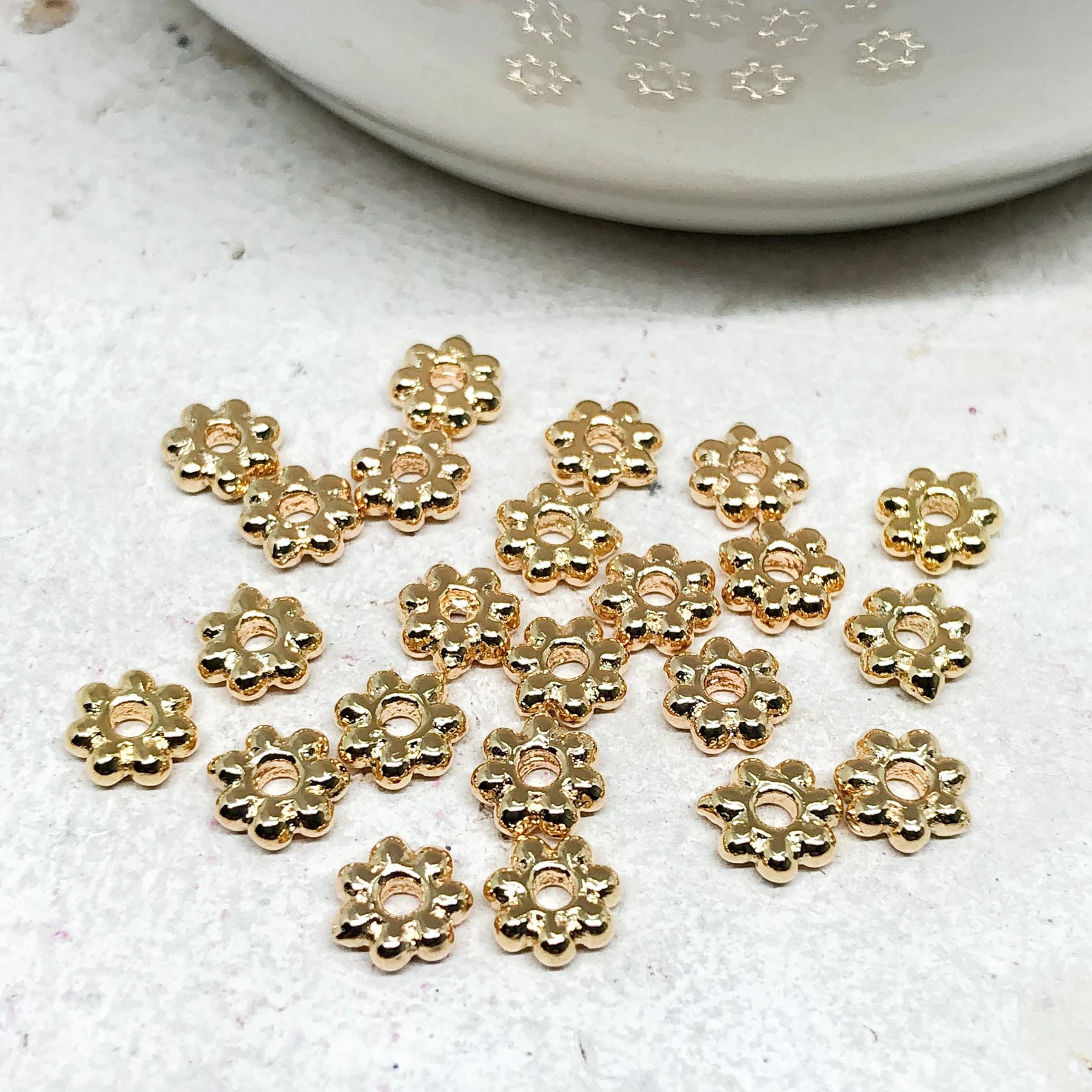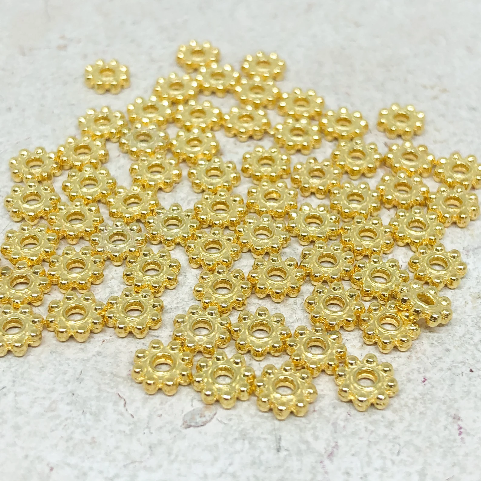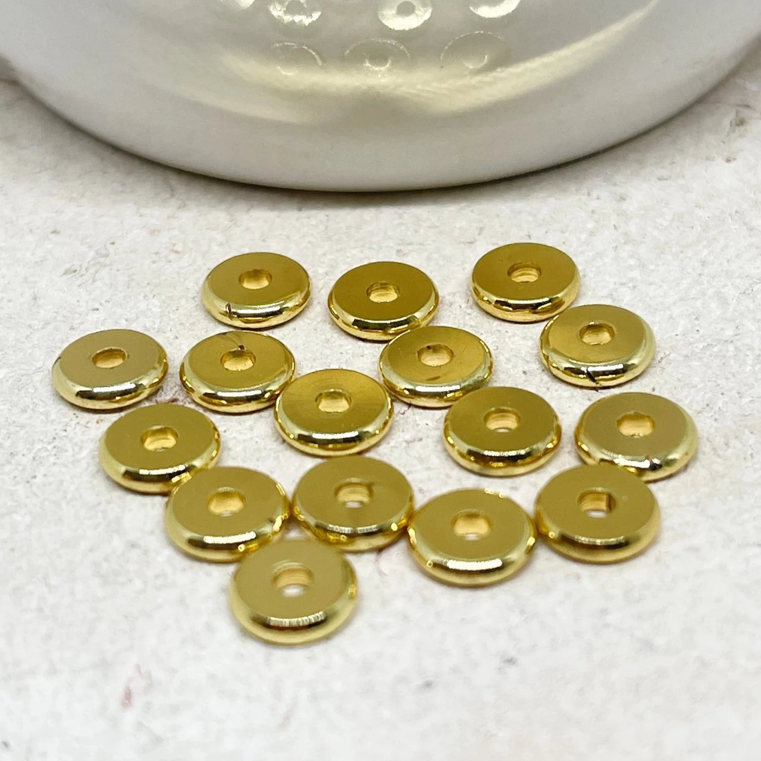 Unsere Zwischenperlen sind die perfekten kleinen Highlights, die deinem Schmuckdesign Struktur und Eleganz verleihen. Ob in glänzendem Gold, Silber, Roségold oder Antikbronze – diese feinen Metall-Elemente setzen dezente Akzente zwischen deinen Perlen und schaffen harmonische Übergänge.