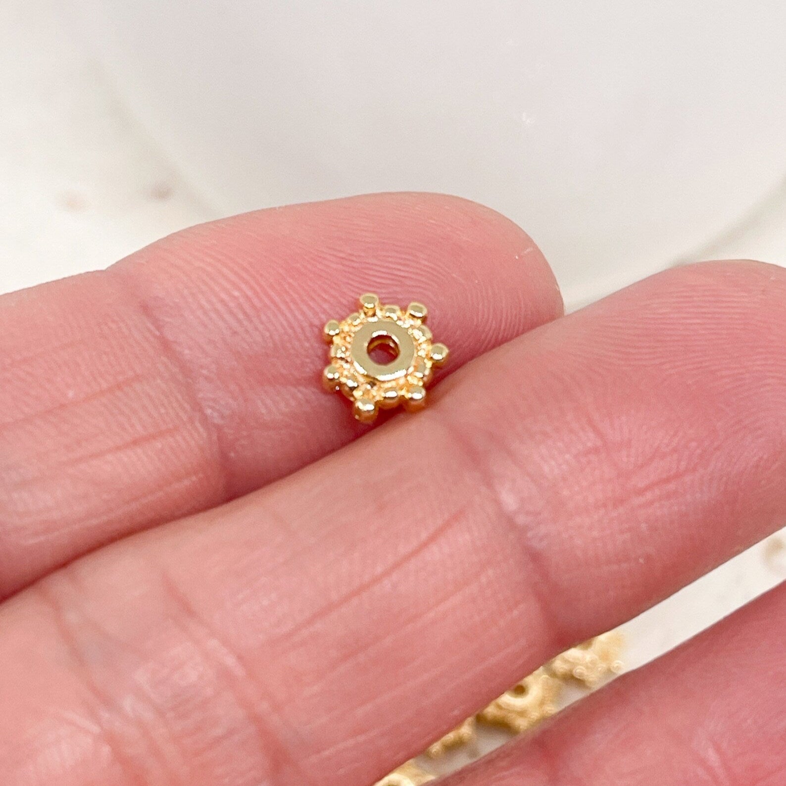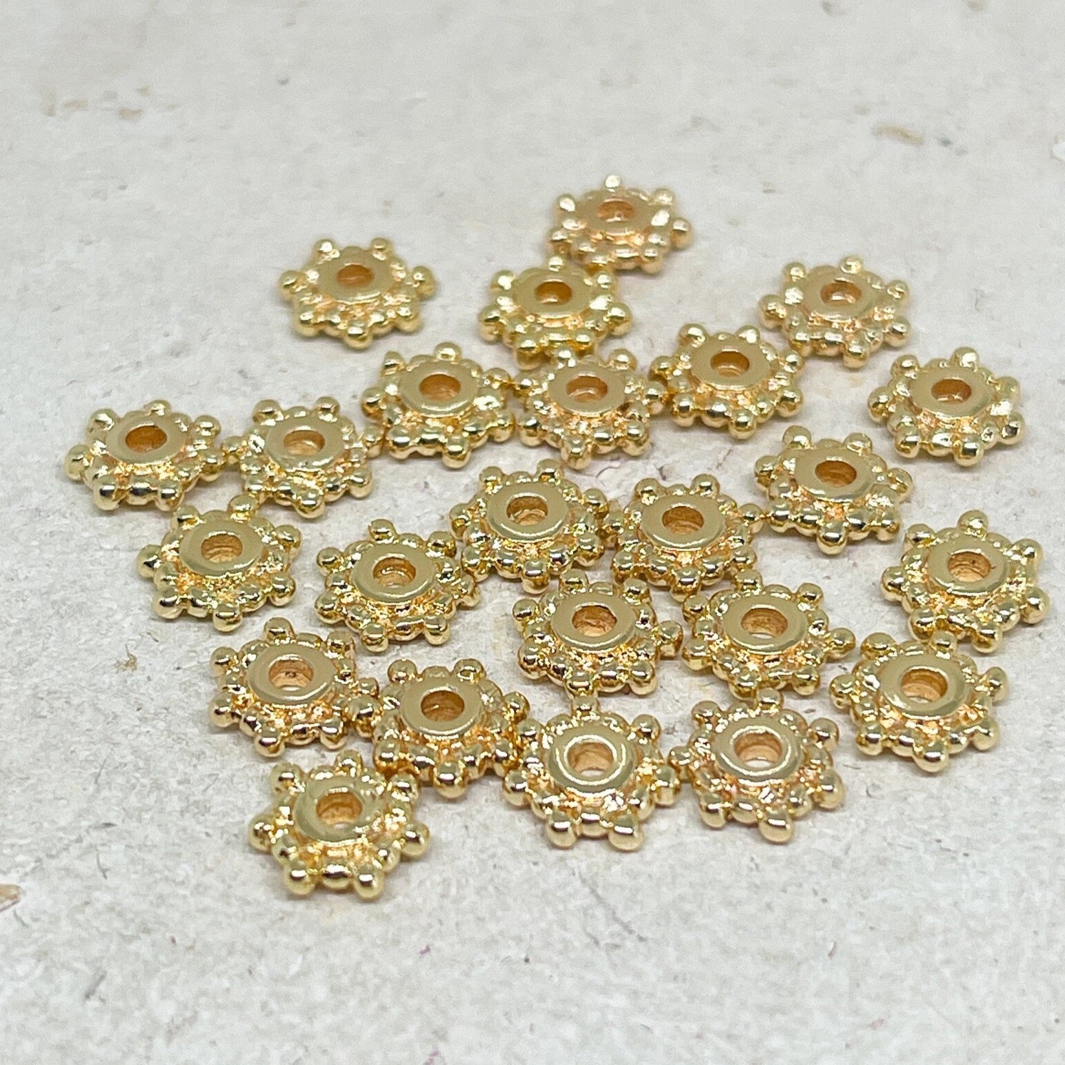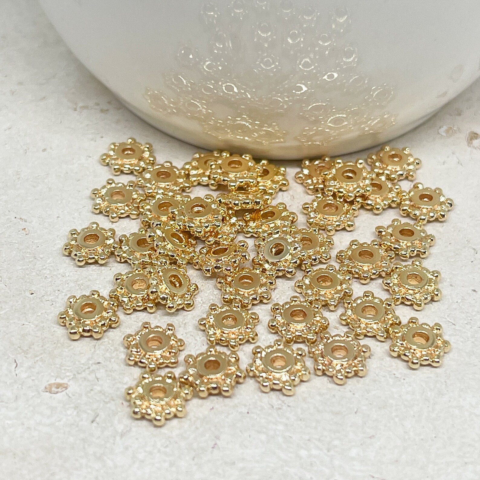 Unsere Zwischenperlen sind die perfekten kleinen Highlights, die deinem Schmuckdesign Struktur und Eleganz verleihen. Ob in glänzendem Gold, Silber, Roségold oder Antikbronze – diese feinen Metall-Elemente setzen dezente Akzente zwischen deinen Perlen und schaffen harmonische Übergänge.