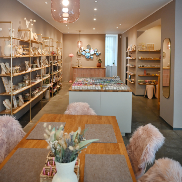 So begann die Suche nach einem geeigneten Ladenlokal, einem Ort, der Raum für meine wachsende Sammlung und gleichzeitig für meine Kreativität bieten konnte. Schnell stießen wir auf das perfekte Domizil. Und die Namensgebung? Nun, diese lag auf der Hand – das Perlenzimmer war geboren.