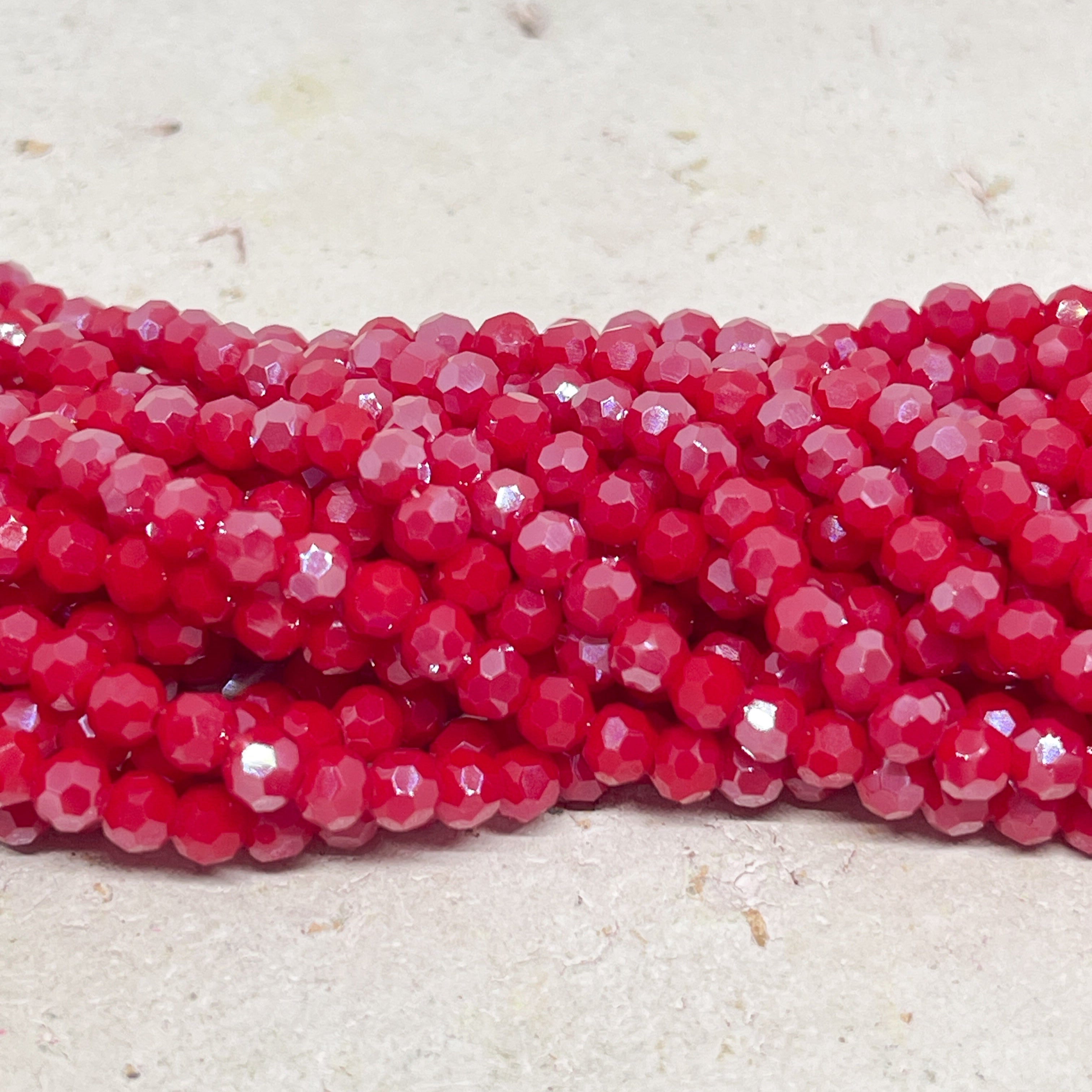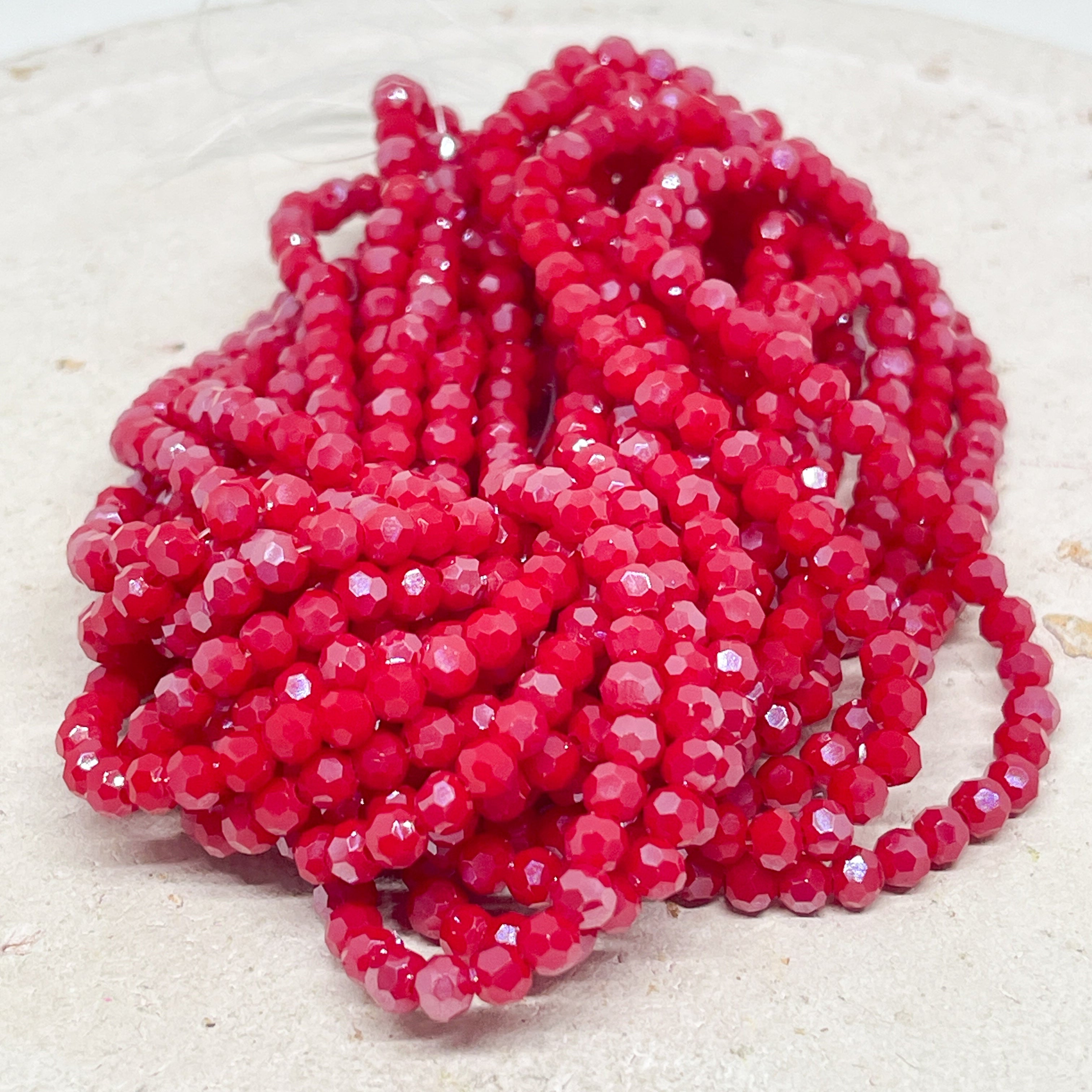 Glasschliffperlen 4mm, Rote Glasperlen